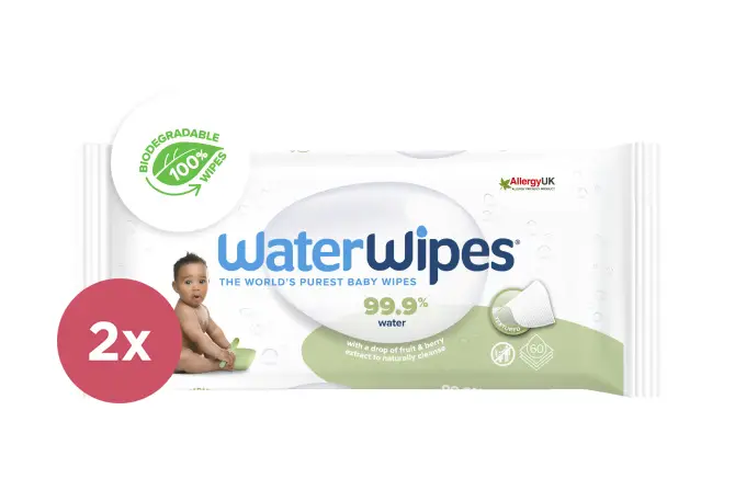 Produkt 2x WATERWIPES Vlhčené obrúsky bez obsahu plastov Soapberry 60 ks ( 120 ks )