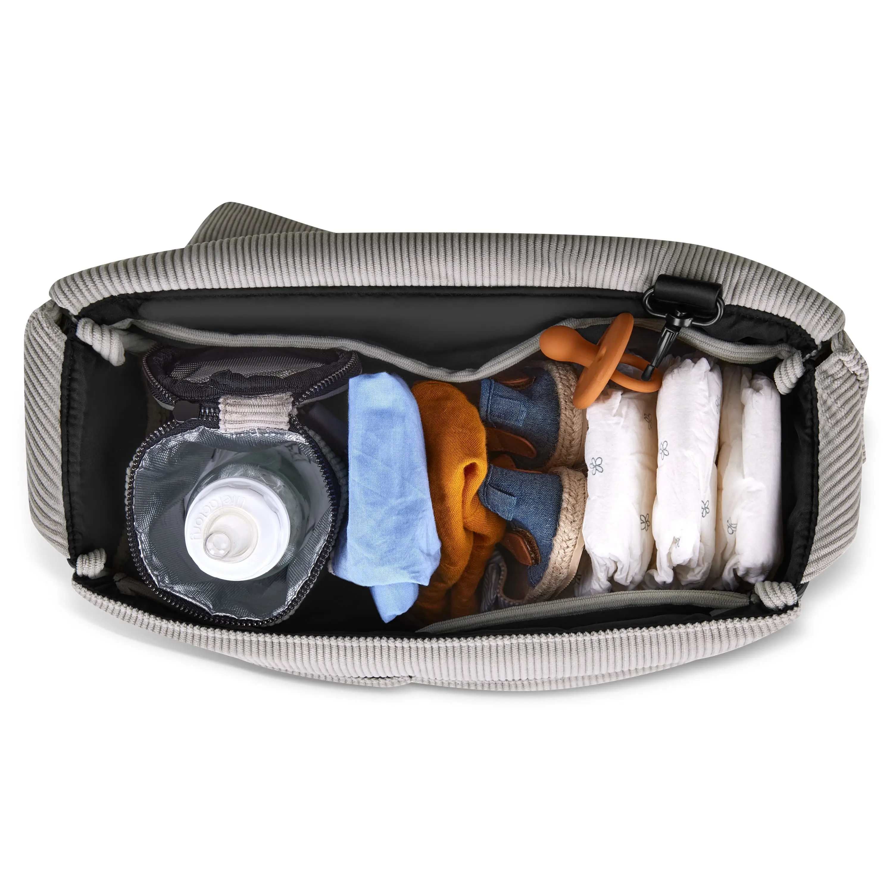 * Univerzálny pripevňovací systém je vhodný pre všetky modely kočíkov od kolekcie 2017. Pri kolekciách pred rokom 2017 je pre pripevnenie príslušenstva na rukoväť kočíka vyžadované "Univerzálne upevnenie tašky na plienky".