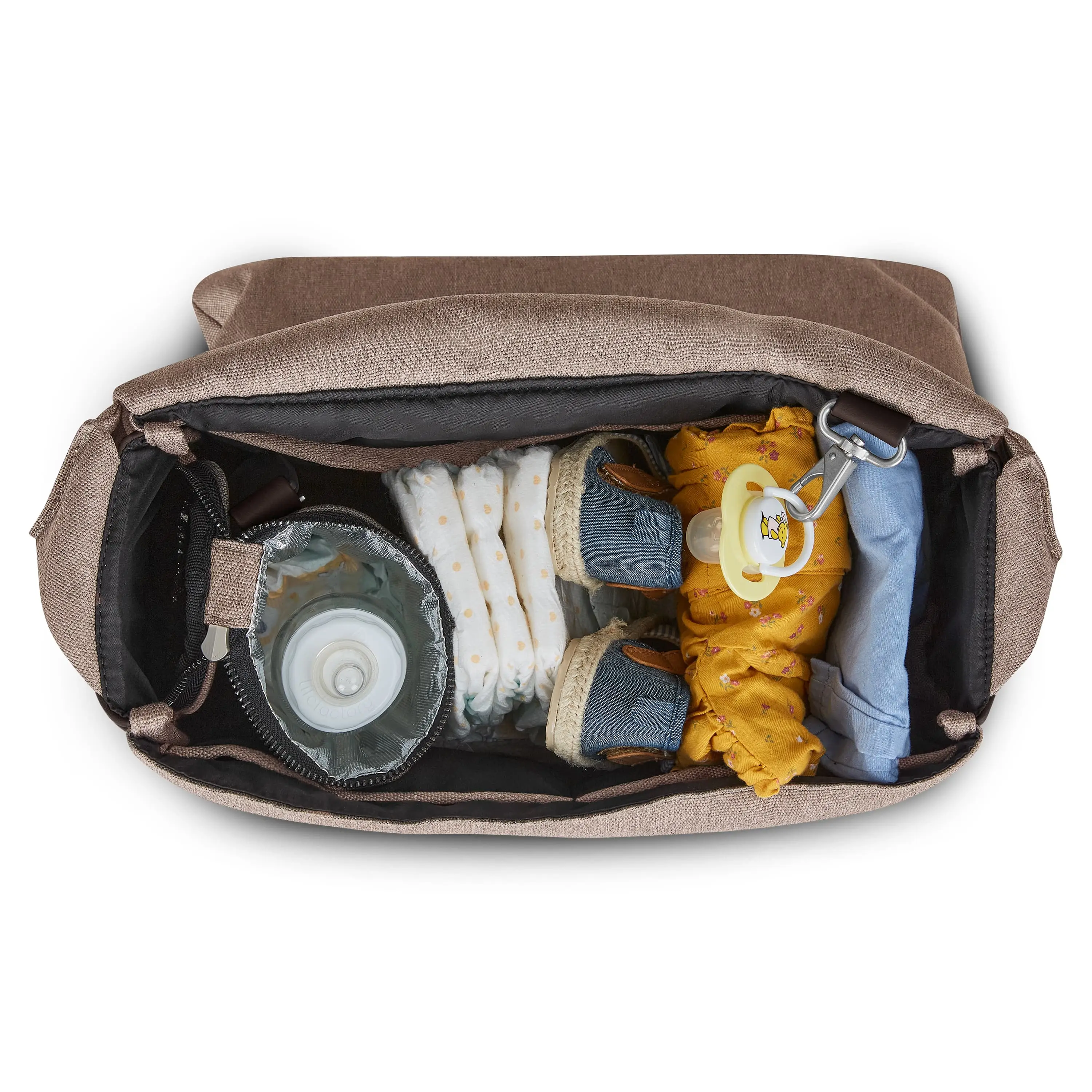 Taška na plienky Urban rodičom umožňuje štýlové nosenie všetkých potrebných vecí. Moderná taška s exkluzívnymi detailmi v napodobenine kože sa pýši veľkou priehradkou, ktorá je ideálna na plienky a fľaše. Okrem toho, taška obsahuje niekoľko menších vreciek pre bezpečné uloženie drobných predmetov a prebaľovaciu podložku, ktorá vám umožňuje hygienické prebalenie vášho dieťaťa, nech už ste kdekoľvek. Široký popruh v napodobenine kože zaisťuje pohodlné nosenie tašky na ramene. Tašku na plienky Urban je možné používať so všetkými modelmi kočíkov.*