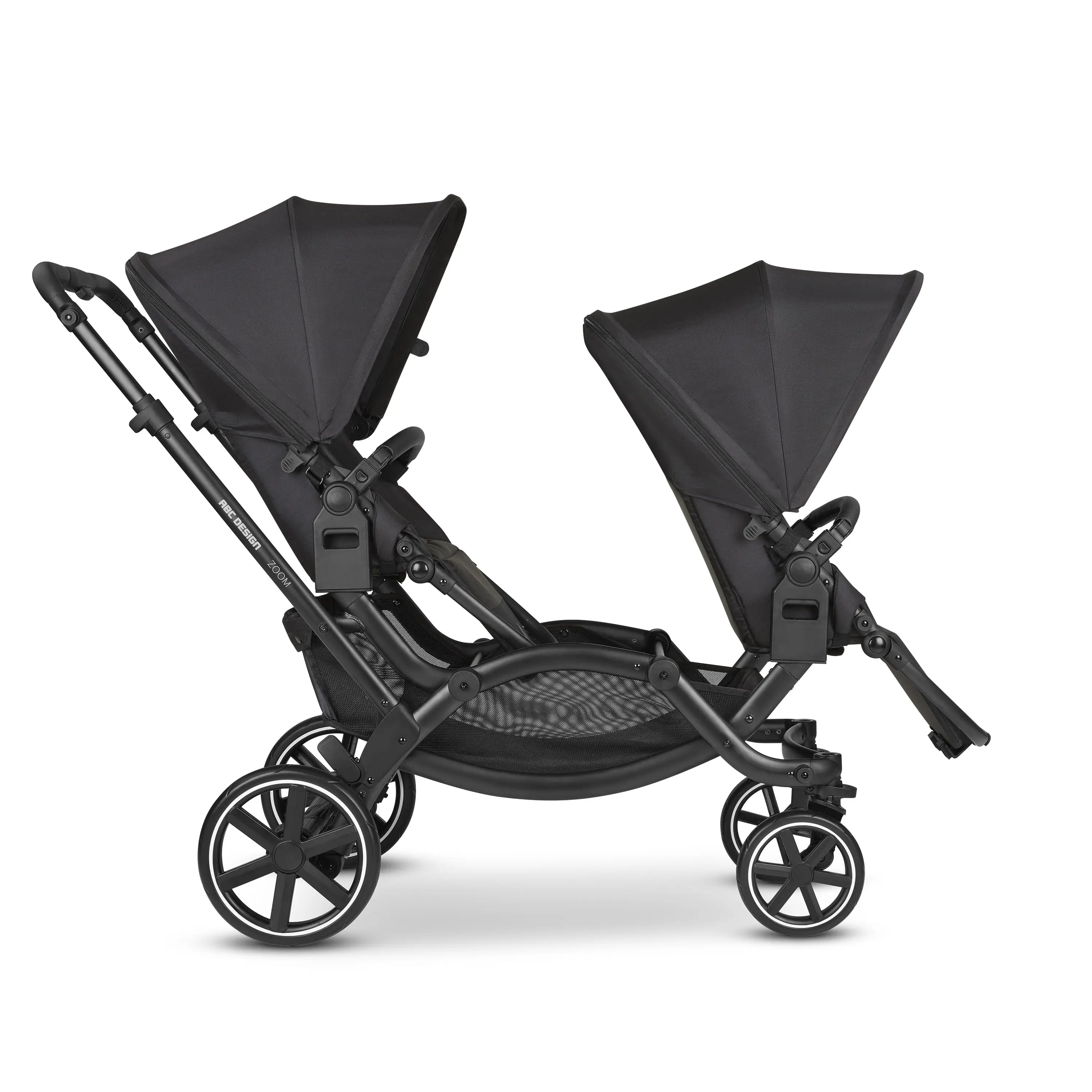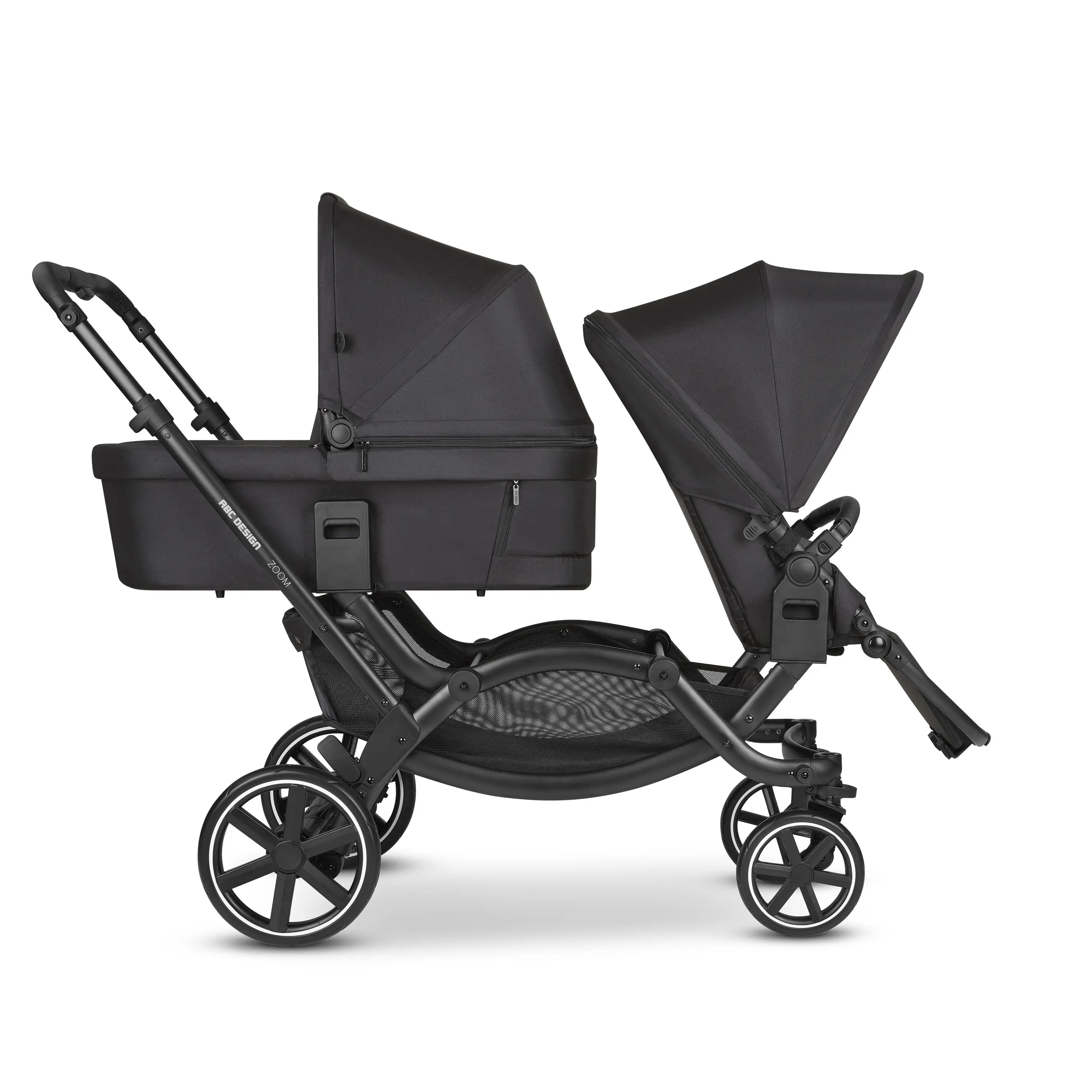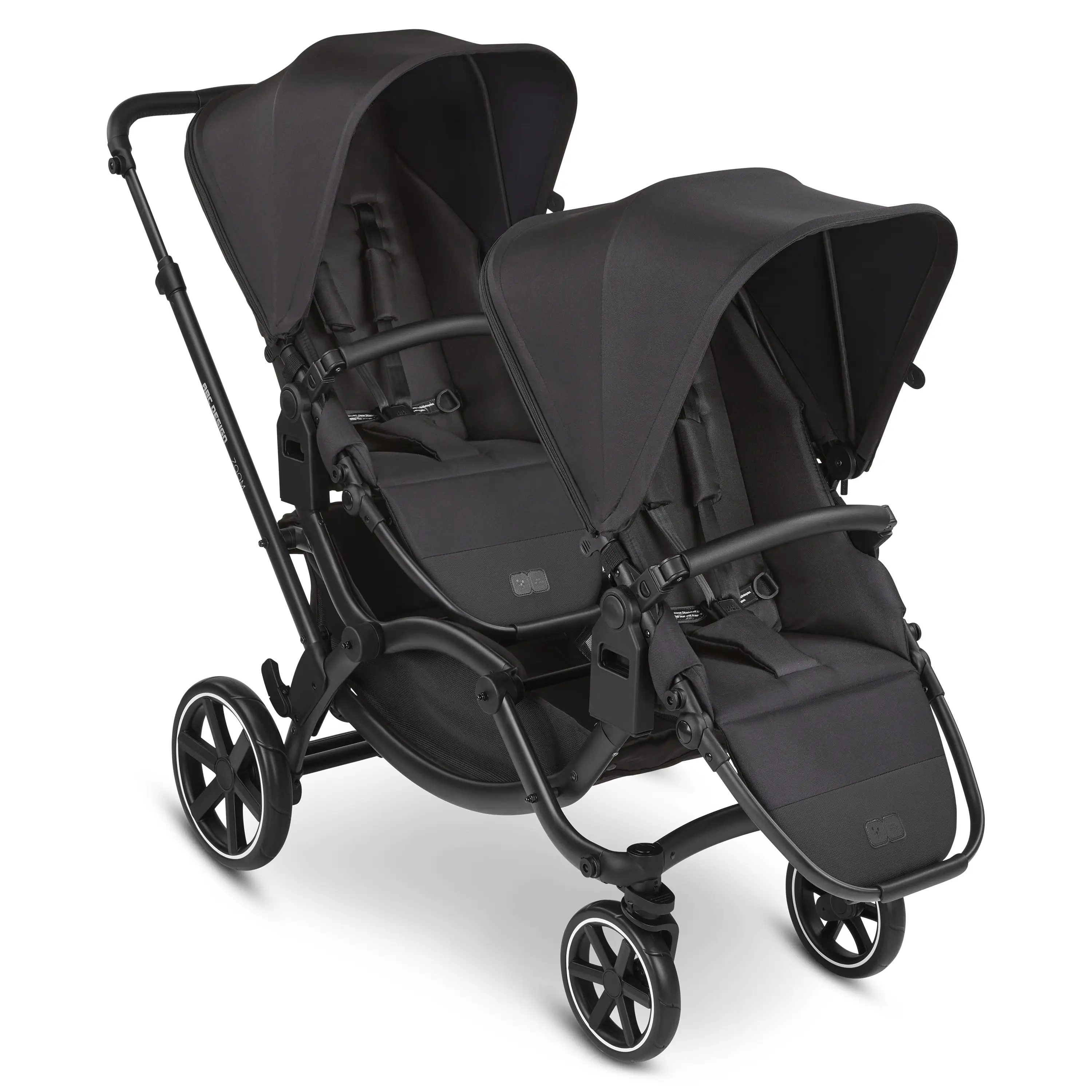 Dvojnásobné šťastie so sebou ale prináša aj nové výzvy. Význam detského kočíka v každodennom živote rodiny je tak dôležitejší ako kedykoľvek predtým. Kočík Zoom vám pomôže zachovať si slobodu a flexibilitu, ktorá je pre vás taká dôležitá. Podľa veku detí môžete ľubovoľne kombinovať športovú nadstavbu, vaničku a autosedačku. Vďaka otočným kolesám je kočík Zoom veľmi ľahko ovládateľný a jeho kompaktný dizajn si skvele poradí aj s úzkymi priestormi. Pomocou niekoľkých pohybov ho možno premeniť na cestovný systém alebo zložiť do minimálnych rozmerov. Pre vaše deti bude kočík Zoom tým najkrajším miestom, odkiaľ budú môcť spoločne objavovať svet. Počas jazdy sa na seba môžu pozerať, spoločne sa smiať, pozorovať vás alebo len tak sedieť a skúmať okolitý svet.