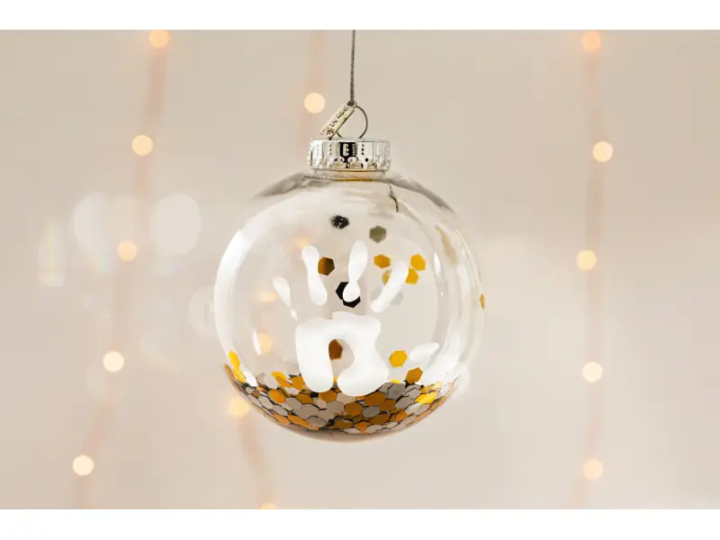 Vianočná ozdoba na stromček s potrebami pre odtlačok ručičky vášho dieťaťa. Vytvorte si úplne originálnu a nezabudnuteľnú ozdobu, ktorá vám bude pripomínať prvé Vianoce s vaším bábätkom.