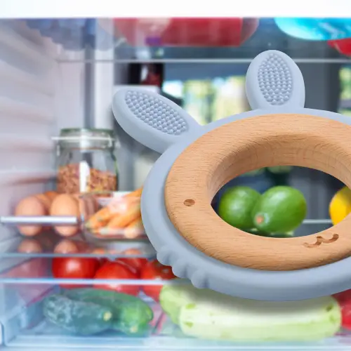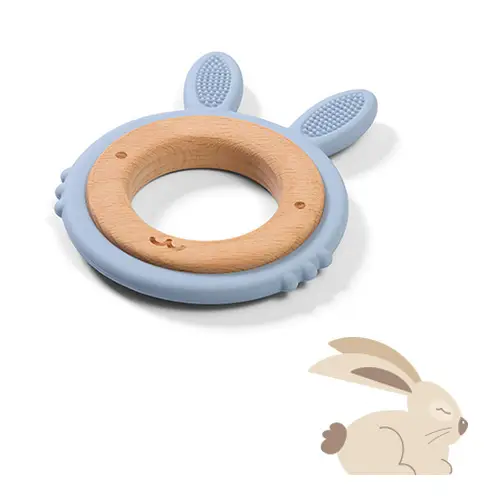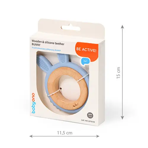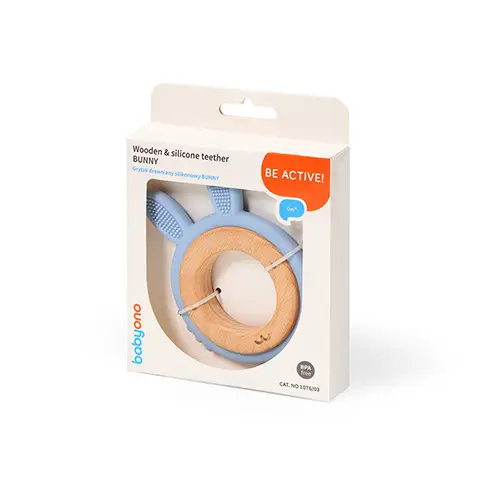 BABYONO Hryzačka dreveno-silikónová Bunny