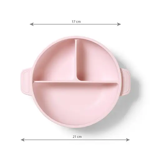 Zavádzate do jedálnička svojho bábätka tuhé jedlo alebo skúšate metódu BLW? Tento silikónový tanierik s tromi priehradkami vám to výrazne uľahčí. Umožní dieťaťu ochutnávať nové chute, podporuje samostatné kŕmenie a vďaka prísavke udrží tanier pevne na mieste – bez rizika prevrátenia. Viečko udrží jedlo teplé a čerstvé, takže môžete pripraviť jedlo vopred alebo uschovať zvyšky na neskôr. Tri samostatné priehradky umožňujú servírovať rôzne druhy jedál bez miešania chutí. Zaoblené okraje a vyššie steny uľahčujú naberanie jedla, či už rukou alebo príborom. Tanier aj viečko sú vyrobené z odolného, netoxického silikónu bez BPA, ktorý môžete používať v mikrovlnnej rúre aj umývačke riadu.