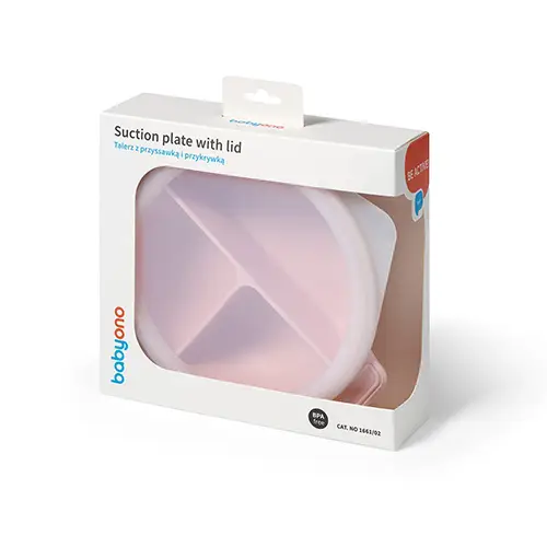 BABYONO Tanier silikónový s prísavkou a viečkom ružový 6m+