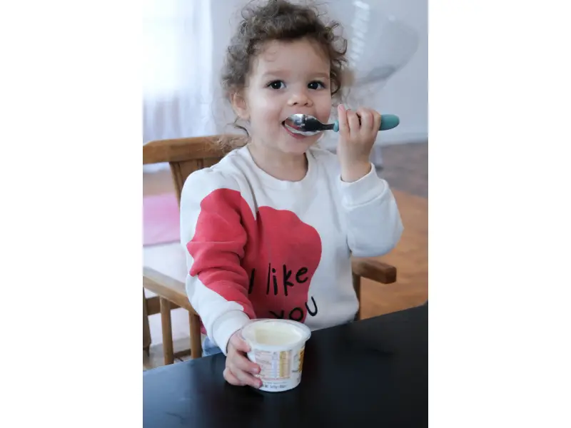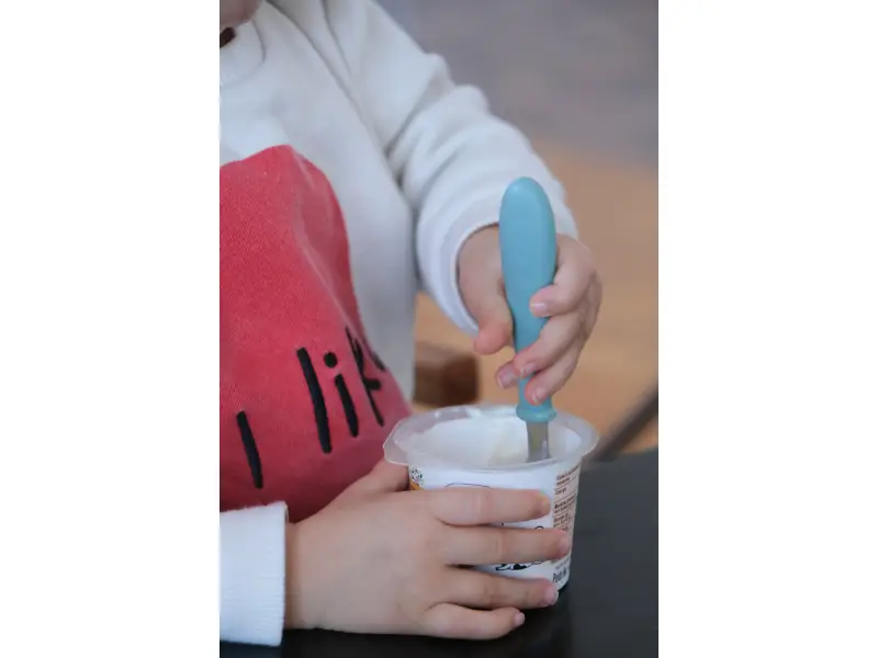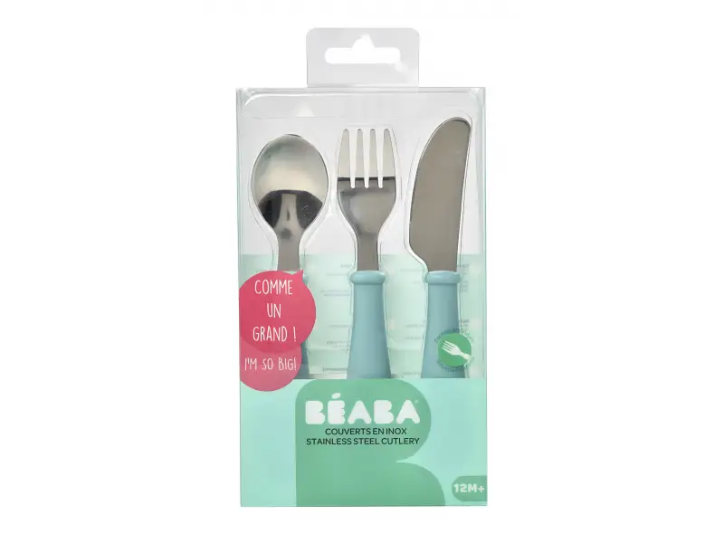 3-dielna sada príboru z kvalitnej nerezovej ocele s plastovou rukoväťou uľahčí dieťaťu prechod od kŕmenia lyžičkou na používanie príboru. Nerezová vidlička, nôž a lyžička sú ľahké a vďaka ergonomickému plastovému držadlu ľahko uchopiteľné detskými rukami. Prehnutý tvar držadla navyše zabraňuje kontaktu jedla so stolom pri položení príboru na stôl.