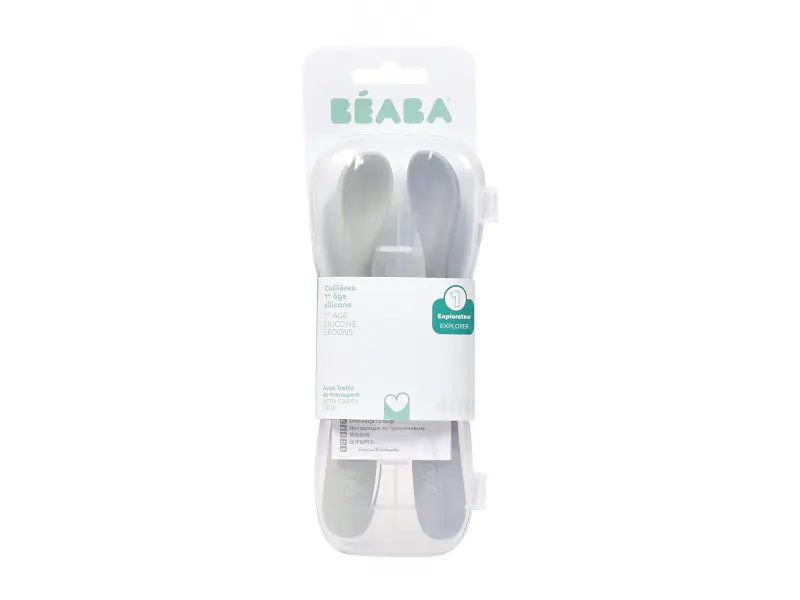 Silikónové lyžičky Beaba pre najmenších sú šetrné k citlivým detským ďasnám a navrhnuté pre hladký prechod z cumlíka na lyžičku. Dlhá rukoväť uľahčuje rodičovi naberanie z misky aj pohára bez zašpinenia rúk. Praktické puzdro umožňuje hygienické prenášanie lyžičiek napr. v prebaľovacej taške.