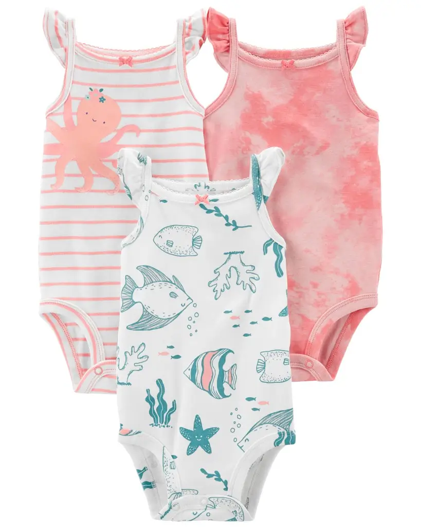 CARTER'S Body bez rukávov Pink Ocean dievča 3ks 18m
