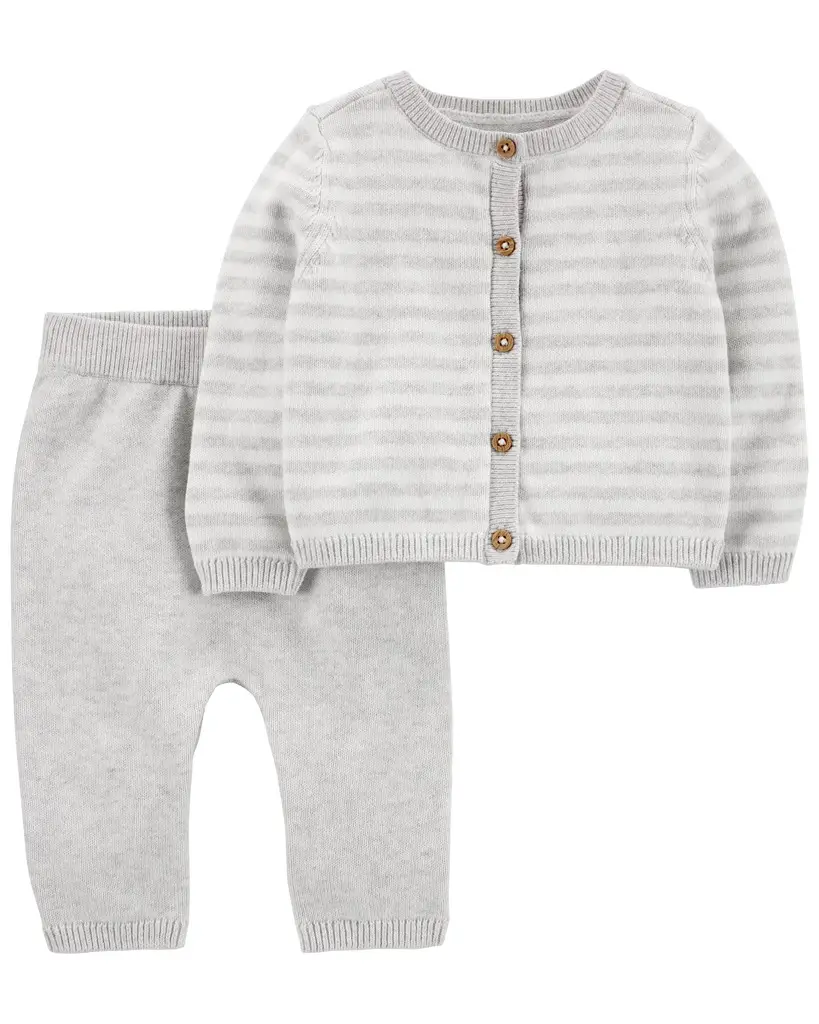 CARTER'S Set 2dielny sveter, nohavice Grey Stripes neutrál 12m