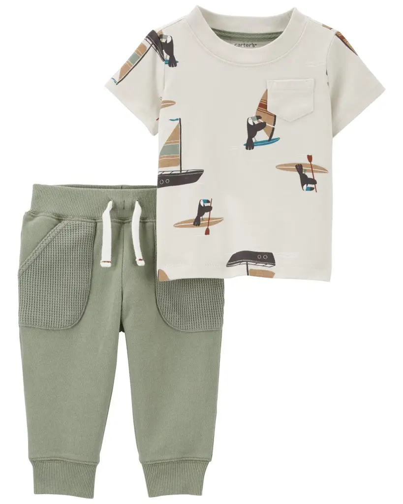 CARTER'S Set 2dielny tričko kr. rukáv, tepláky Green Toucan chlapec 12m
