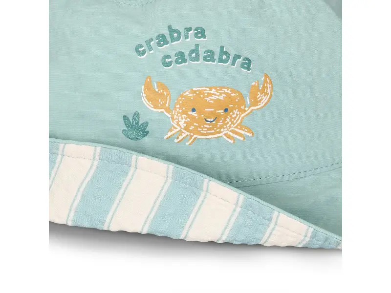 Oboustranný klobouček s krásným potiskem chrání vaše dítě před sluncem při koupání u moře i doma na zahradě. Ať už vaše děti milují skákání ve vlnách, koupání v bazénu nebo si rády staví hrady z písku, s touto čepičkou si mohou bezstarostně užívat celý den. Oboustranné provedení nabízí na výběr dva designy klouboučku - jednobarevný s potiskem a pruhovaný.