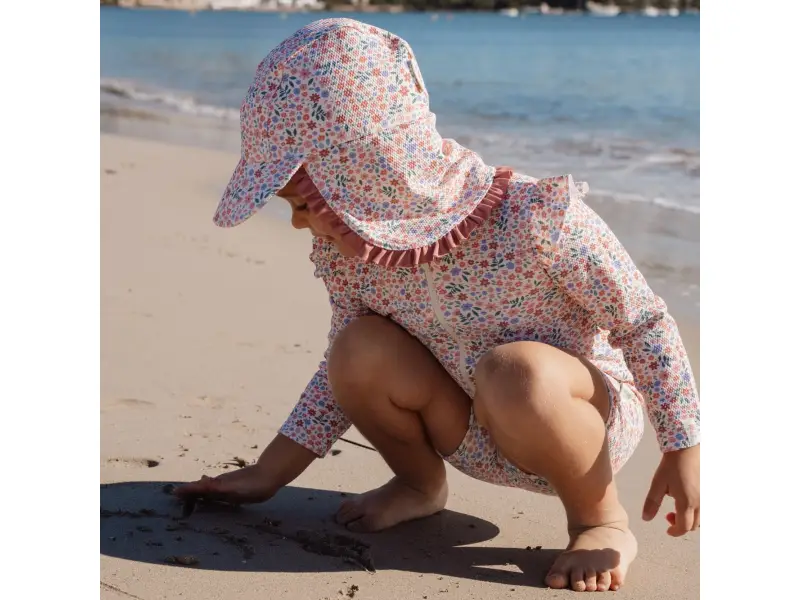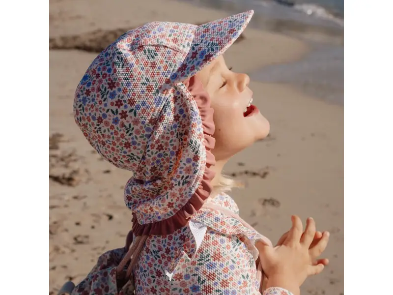 Čepička s krásným potiskem chrání vaše dítě před sluncem při koupání u moře i doma na zahradě. Ať už vaše děti milují skákání ve vlnách, koupání v bazénu nebo si rády staví hrady z písku, s touto čepičkou si mohou bezstarostně užívat celý den.