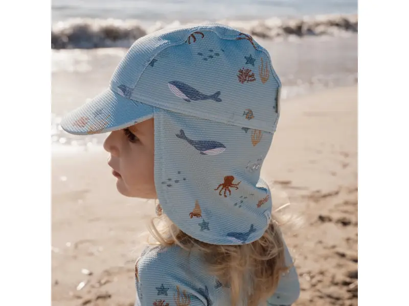 Little Dutch Plážová kšiltovka s ochranou krku Ocean Friends vel. 3