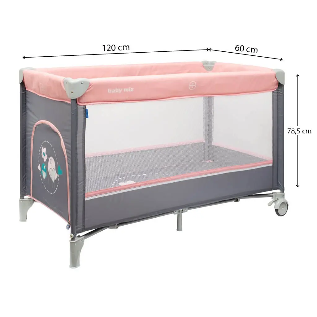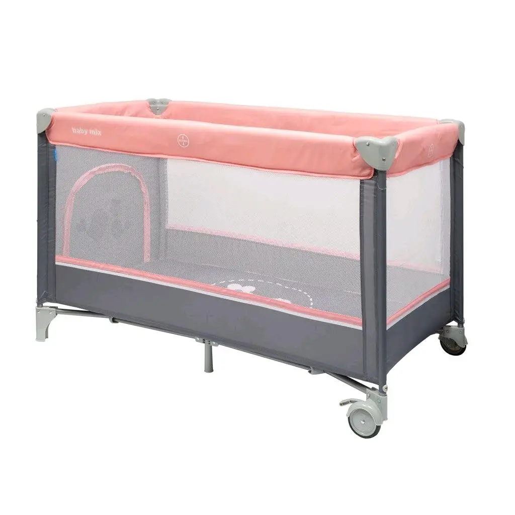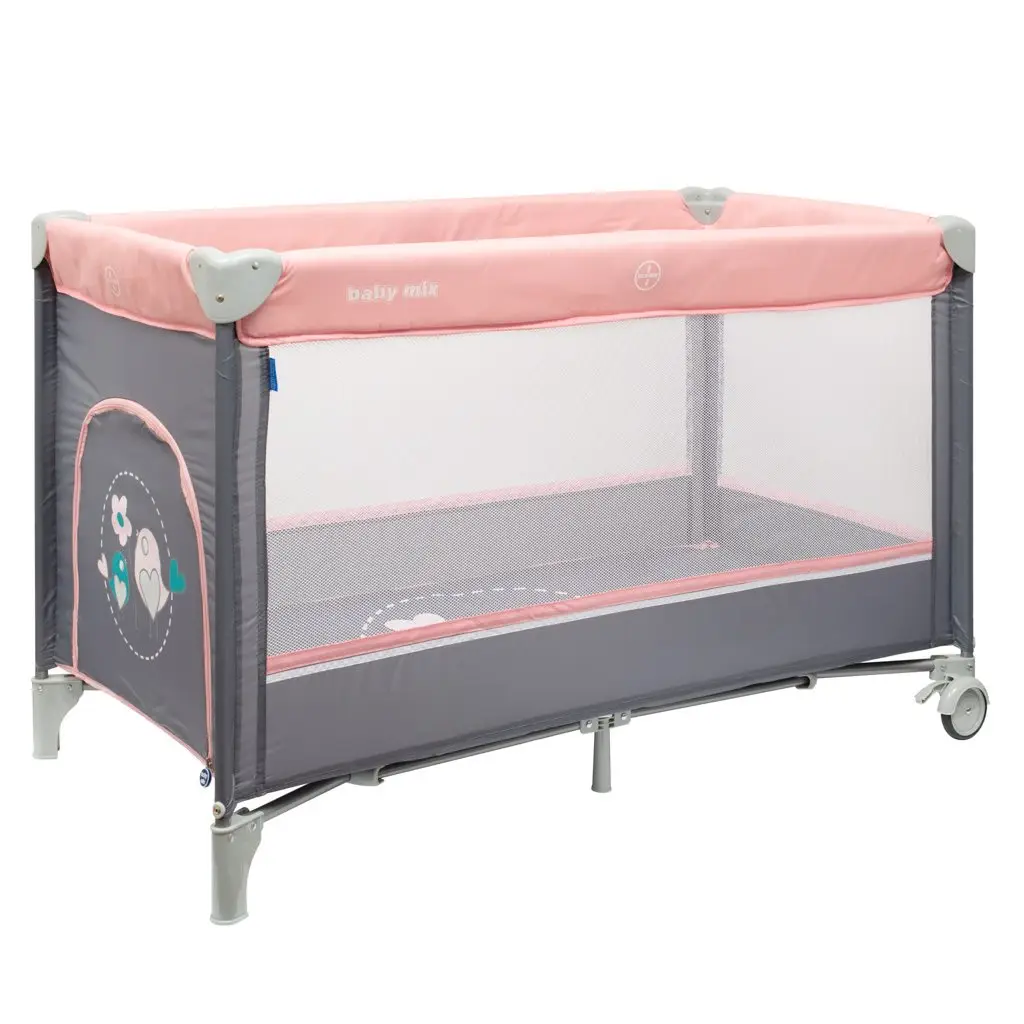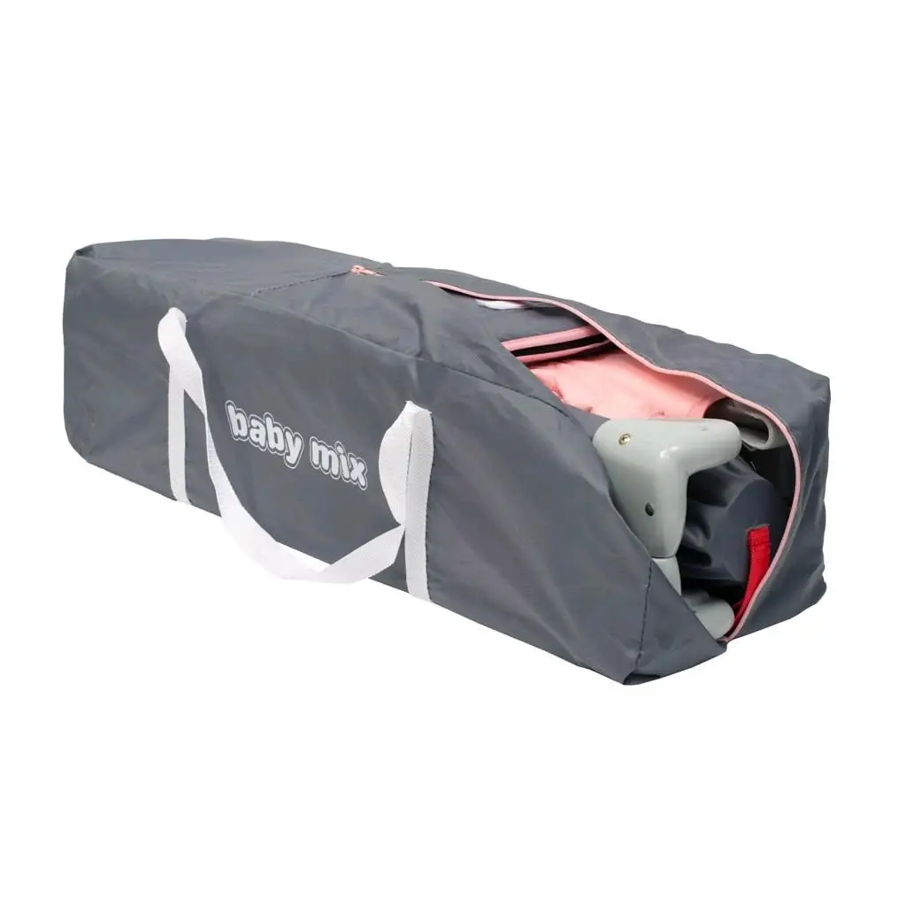 Praktická prenosná cestovná postieľka Baby Mix slúži nielen ako cestovná postieľka, ale tiež ako ohrádka. Užite si čas strávený s Vašim dieťatkom kedykoľvek budete na dovolenke, alebo na cestách. Aj prarodičia si môžu užiť prítomnosť svojich vnúčatiek, aj keď už nemajú detskú postieľku. Vďaka jednoduchému skladaciemu mechanizmu postieľku rýchlo a ľahko zložíte, vložíte do priloženej praktickej tašky s popruhmi a pohodlne vložíte do auta. Postieľka je veľmi ľahká, je opatrená kolieskami s integrovanou brzdou, takže ju môžete ľahko previezť do inej miestnosti, na balkón, terasu či záhradu.