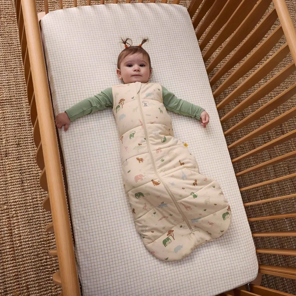 Vak na spanie Jersey 2,5 TOG je ideálny na udržanie tepla pre dieťa počas noci v miestnostiach s teplotou 17-23 °C. Hodnota 2,5 TOG znamená, že pri používaní tohto výrobku nie sú potrebné ďalšie prikrývky v postieľke, čo z neho robí možnosť bezpečného spánku. Rodičia si môžu byť istí, že priedušné organické a prírodné vlákna pomáhajú regulovať teplotu dieťaťa a zabraňujú prehriatiu. Rodičia sa môžu riadiť izbovým teplomerom ZDARMA a príručkou What to Wear (Čo si obliecť), ktoré sú súčasťou výrobku, a vhodne pod ne navrstvovať vrstvy, aby ich dieťa zostalo v teple.