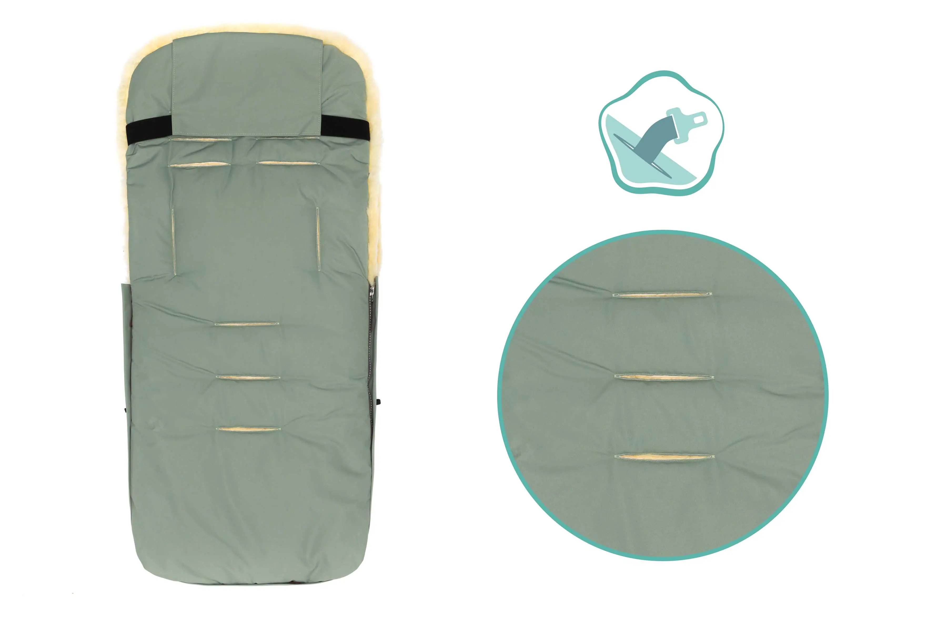Elastický pás na zadnej strane zabraňuje zošmyknutiu fusaku zo športového kočíka. Vak má rozmery 50 x 100 cm a je vhodný pre hlboké aj športové kočíky.