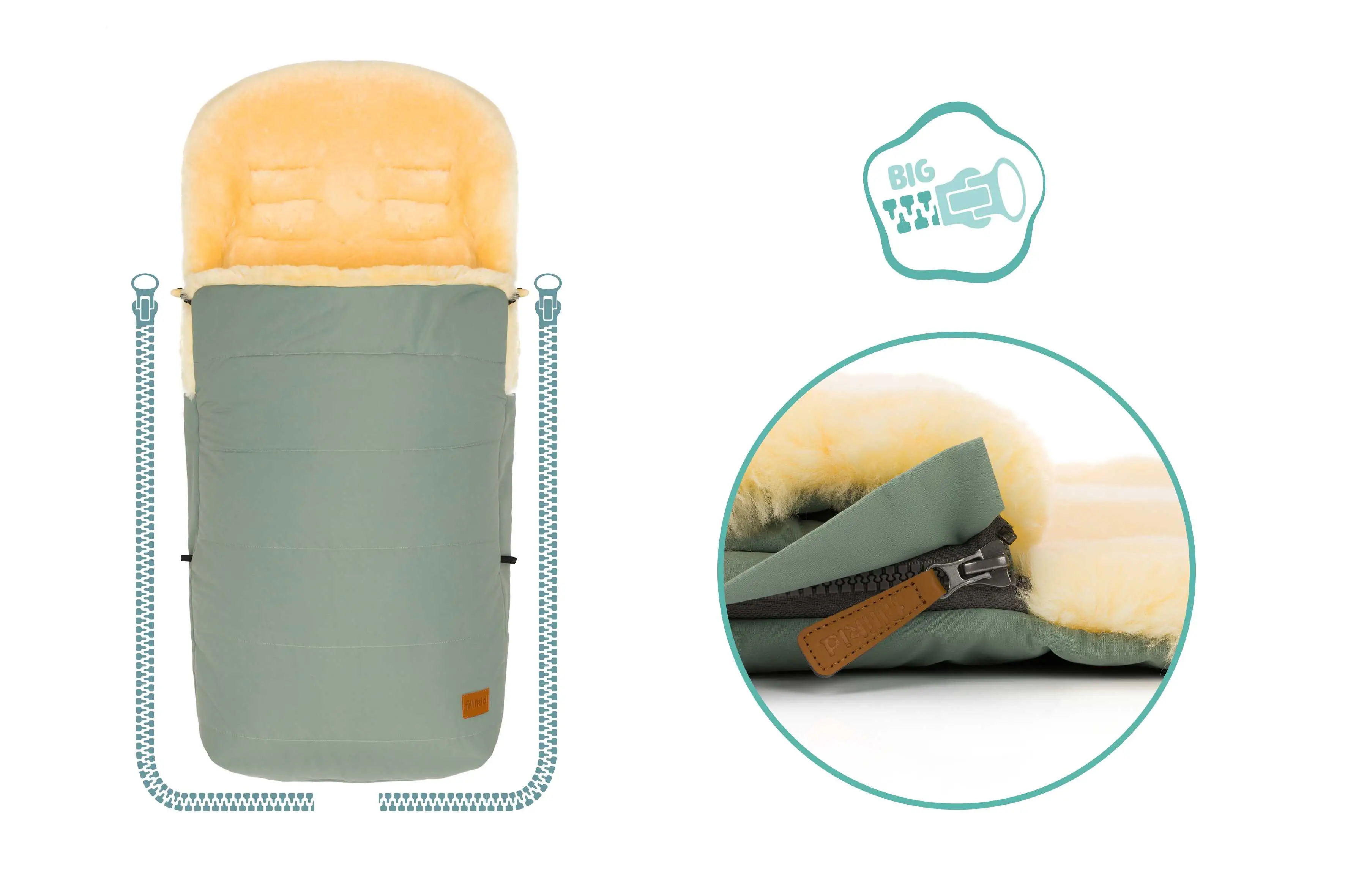 Fillikid Fusak zimný z jahňacej kožušiny Bernina sage