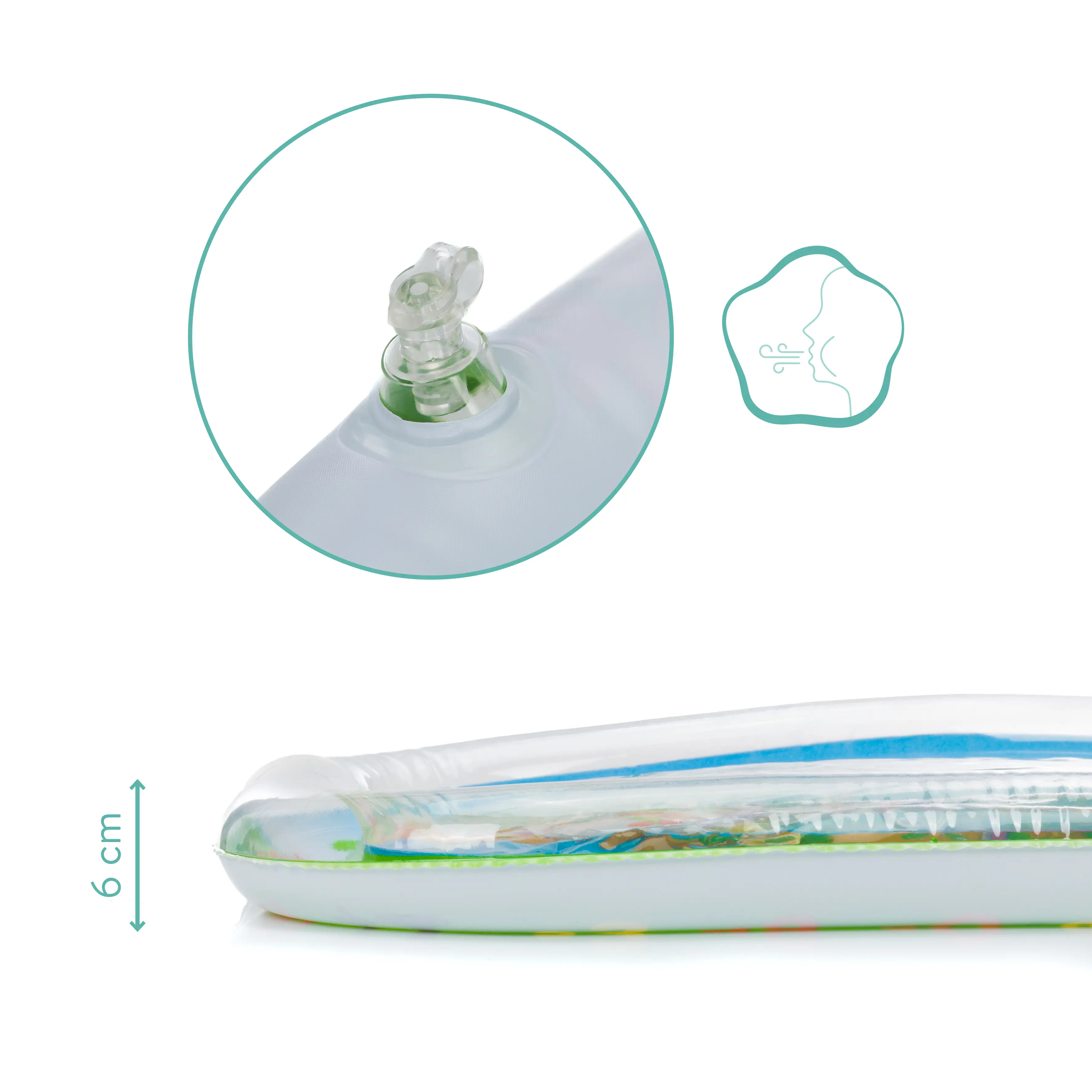S touto štvorcovou podložkou na hranie s vodou (60 × 45 cm) môžete preniesť podmorský svet priamo do detskej izby - bez mokrého oblečenia! Stačí ju naplniť vodou a farebné pohyblivé motívy vnútri poskytnú deťom veľa zábavy pri ležaní, stláčaní a skúmaní.