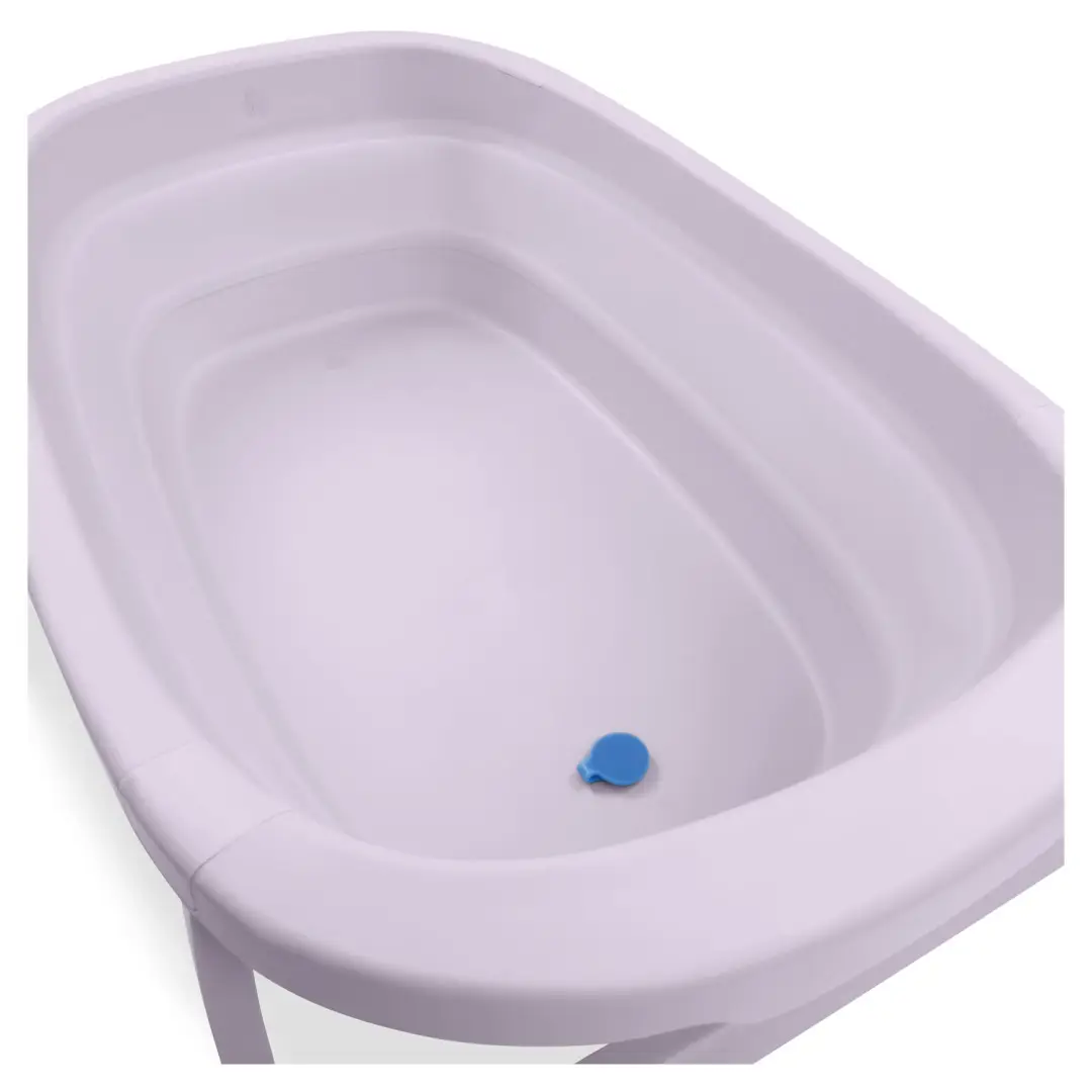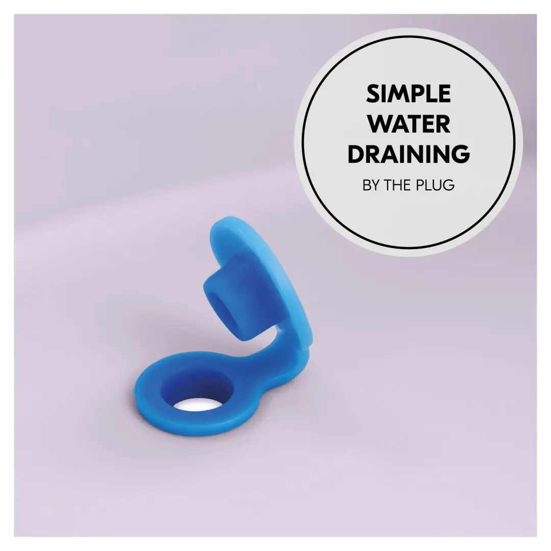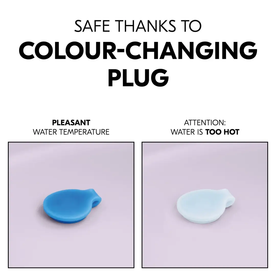Skladacia vanička pojme až 40 litrov vody a má maximálnu nosnosť 30 kg, takže vaše dieťa bude mať dostatok priestoru a vy môžete ušetriť trochu vody v porovnaní s používaním bežnej vaničky. Mäkké a zaoblené časti pomáhajú udržať vaše dieťa v bezpečí, zatiaľ čo výklopné nožičky zabezpečujú stabilnú polohu na rovnom povrchu. A aby ste udržali pre vaše dieťa príjemnú teplotu okolo 36 stupňov, zátka signalizuje príliš vysokú teplotu vody tým, že sa sfarbí na bielo, aby vám poskytla približnú informáciu.