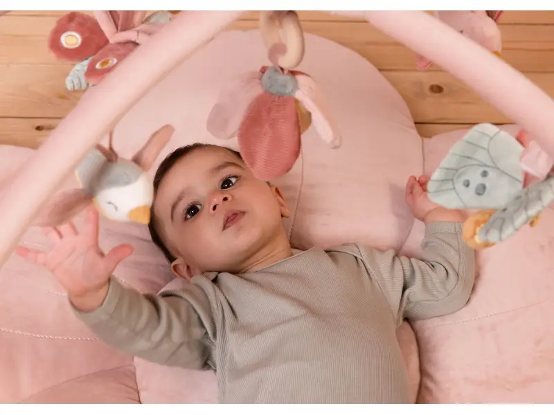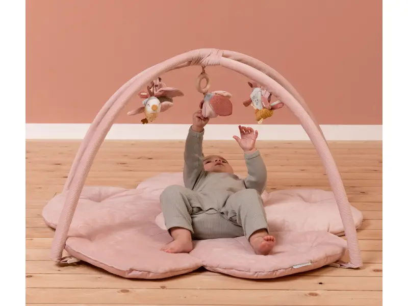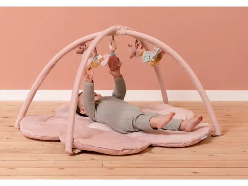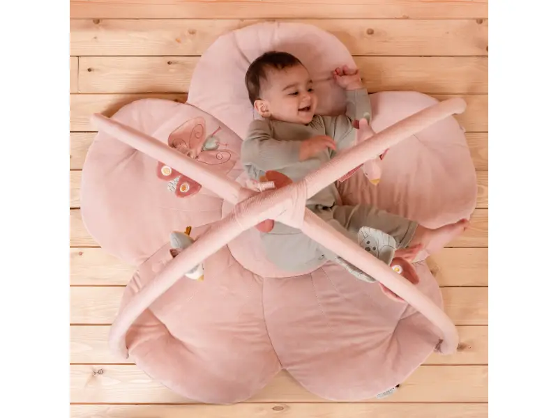 Mäkká hracia deka v tvare kvetu s hrazdou, na ktorej sú zavesené hračky v podobe kvety, vtáčikov a motýlikov. Pri skúmaní hračiek upúta pozornosť dieťaťa hrkanie, šušťanie, pískanie i zvonenie. Hračky sú odnímateľné a je možné ich používať aj samostatne.