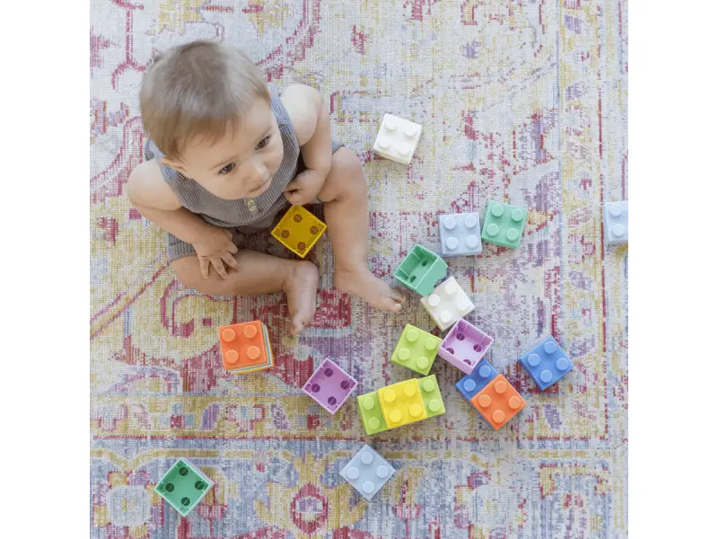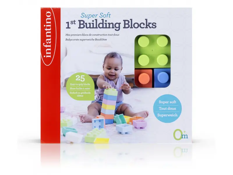 Super mäkké kocky na prvé stavanie sú vyrobené z príjemného silikónového materiálu. Dieťa ich ľahko uchopí a najskôr ich môže skúmať rukami aj ústami. Neskôr sa naučia kocky stavať na seba a vymýšľať nekonečné kombinácie. S vašou pomocou sa pri hraní s kockami môže naučiť aj rozoznávať farby a veľkosti.