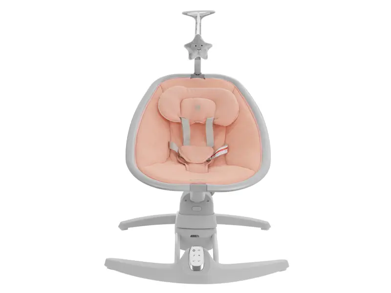Hojdacie lehátko KikkaBoo Spinny s hudobným boxom umožňuje hojdanie bábätka do strán. Hudobný box ponúka osem melódií a upokojujúcich prírodných zvukov s možnosťou nastavenia hlasitosti. Zavesená hračka na odnímateľnom ramene nad lehátkom láka dieťa na pozorovanie. Lehátko sa ovláda s pomocou diaľkového ovládača.