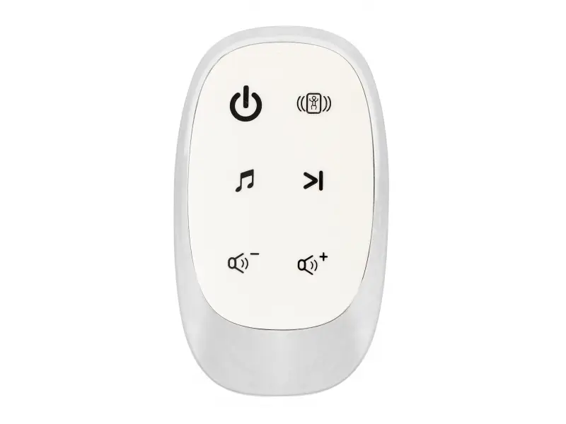 Súčasťou balenia je AC adaptér, batérie 4x C nie sú súčasťou. Diaľkový ovládač obsahuje vymeniteľnú gombíkovú batériu CR 2025 3V.