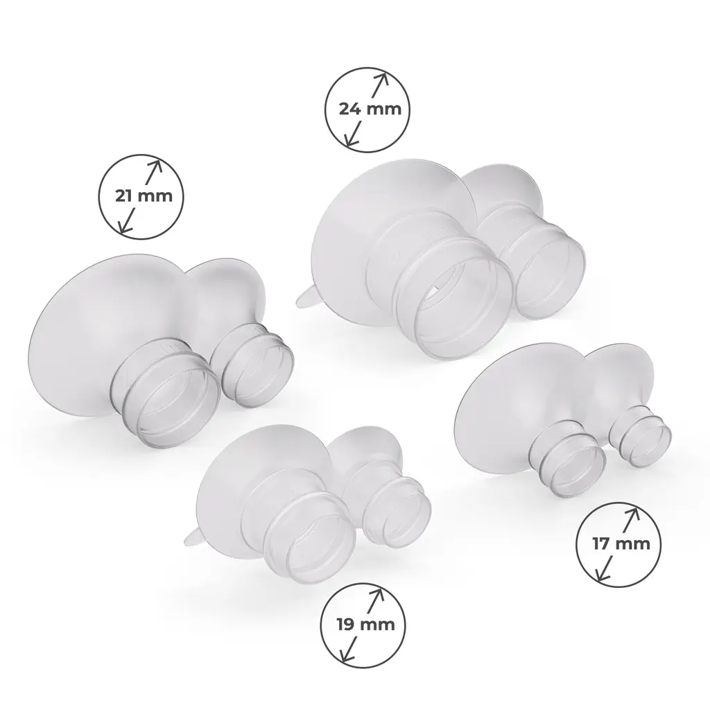 Sada obsahuje lieviky (17, 19, 21, 24, 27 mm), ktoré uľahčujú prispôsobenie odsávačky anatómii prsníka a zlepšujú utesnenie a pohodlie už od prvého použitia. Jedná sa o hmatateľnú úroveň pohodlia, ktorá ovplyvňuje nielen pocity mamičky, ale aj kvalitu a účinnosť odsávania mlieka.