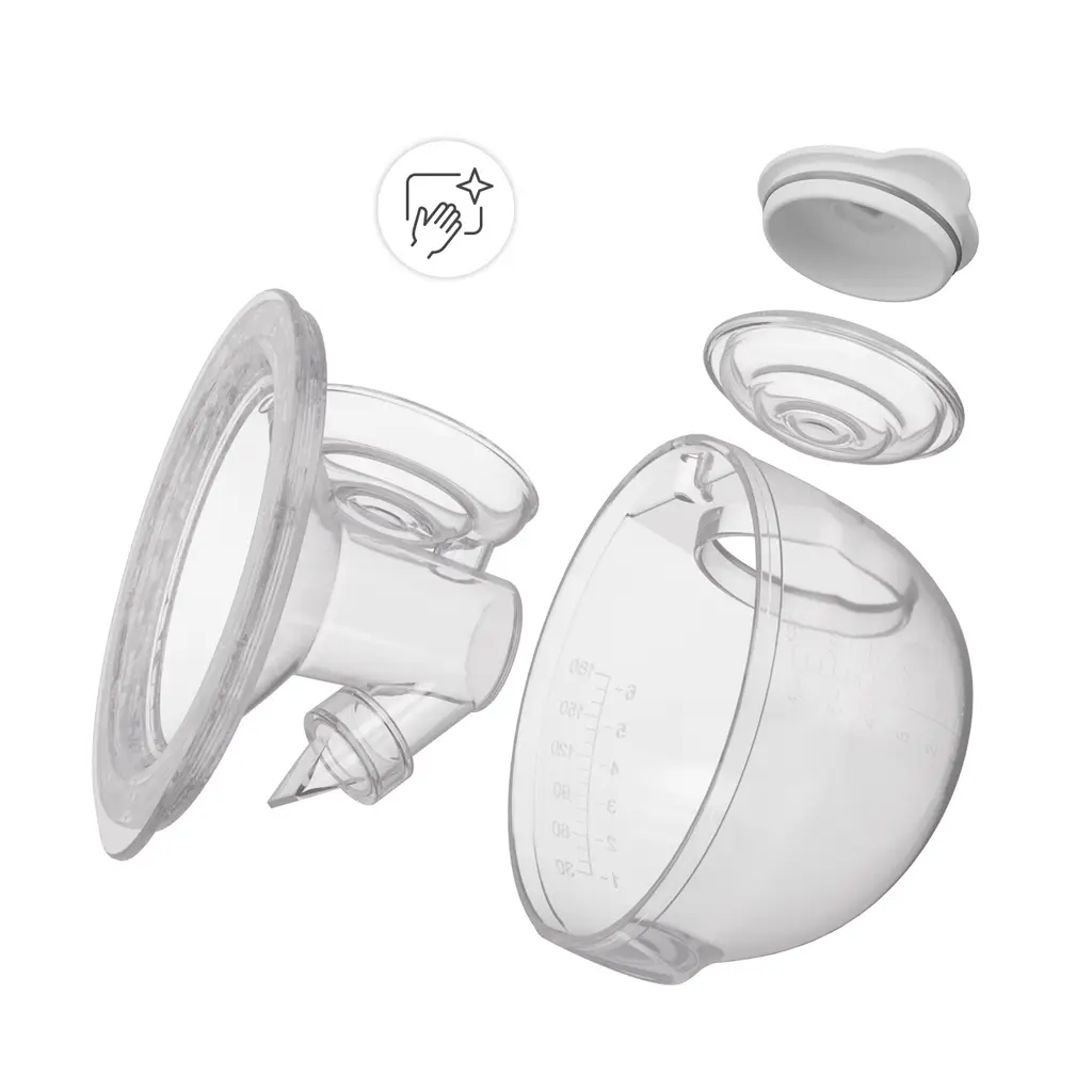 Konštrukcia s obmedzeným počtom dielov uľahčuje montáž, demontáž, umývanie a sterilizáciu. Okrem prenosnej dvojitej odsávačky mlieka obsahuje súprava aj náhradné membrány a ventily (6 kusov od každého), ktoré pomáhajú udržiavať hygienu po dobu 12 mesiacov používania. Úložné puzdro, ktoré je súčasťou sady, uľahčuje skladovanie a prepravu - praktická podpora pre každodenné použitie.