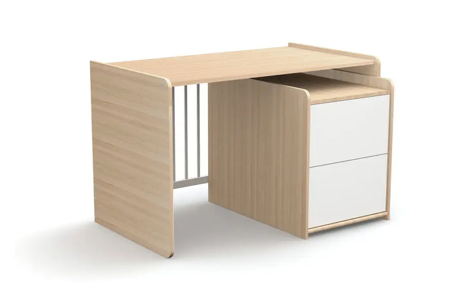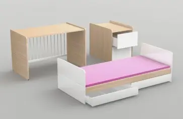Luxusná trasformovateľná postieľka 5 v jednom za skvelú cenu. Vysoká kvalita použitých materiálov, lakovanie vo vysokom lesku aj najkvalitnejšie kovanie s tlakovým ovládaním a tlmením stanovujú nové meradlá priestorovo úsporného riešenia. Na 2 metroch máte celú detskú izbu. Na začiatku ju budete využívať v komplete a všetko máte po ruke. Neskôr, keď dieťa povyrastie, z komletu vytvoríte samostatnú postieľku a skrinku. V tretej fáze posteľ 180x80 cm a písací stôl. Nároky dieťaťa aj Vaše sa časom menia. Táto kombi postieľka s nimi bude držať krok.