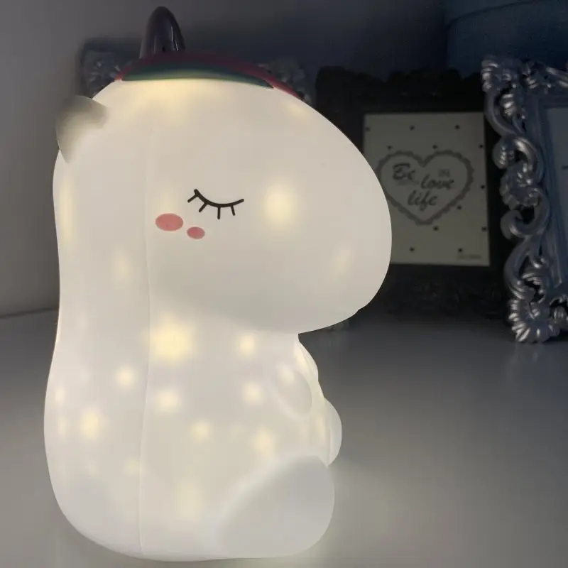 Silikónová LED lampička s projekciou hviezdičiek, ktorá sprevádza dieťatko do ríše snov!