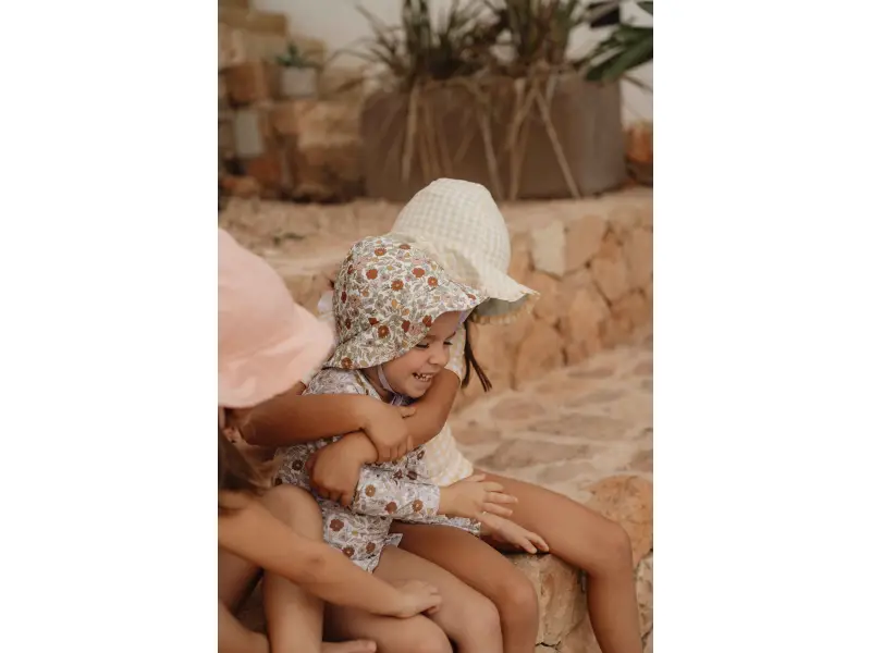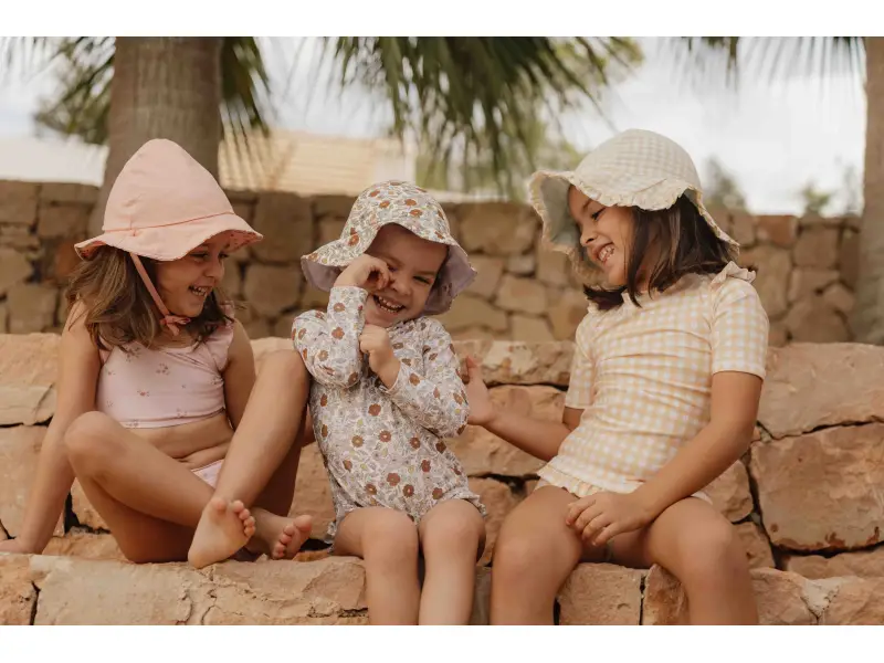 Všestranný klobúk z UV ochrannej tkaniny s krásnou potlačou ochráni vaše dieťa pred slnkom pri kúpaní pri mori alebo doma na záhrade. Či už vaše deti radi skáču do vĺn, plávajú v bazéne alebo stavajú hrady z piesku, s týmto klobúkom si môžu užiť bezstarostný deň. Šnúrky pomáhajú udržať klobúk na hlave počas plávania a hry. Obojstranný dizajn ponúka možnosť výberu z dvoch vzorov klobúka - jednofarebného a s potlačou.