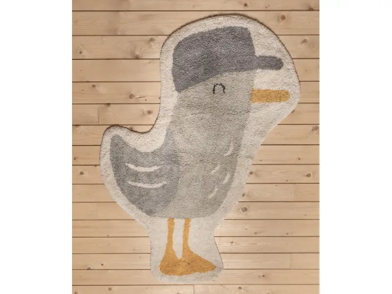Dekoratívny koberec do detskej izby je vyrobený z recyklovanej bavlny. Na mäkkom koberci v podobe rozkošnej čajky sa bude vášmu dieťaťu krásne sedieť a hrať sa.