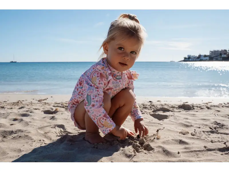 Plavky z UV ochrannej tkaniny s krásnou potlačou chránia vaše dieťa pred slnkom pri kúpaní pri mori aj doma na záhrade. Či už vaše deti milujú skákanie vo vlnách, kúpanie v bazéne alebo si rady stavajú hrady z piesku, v týchto plavkách si môžu bezstarostne užívať celý deň.
