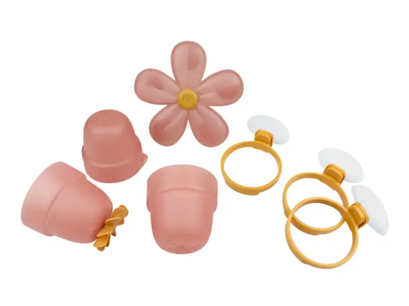 Balenie obsahuje 4 prvky s prísavkami: kvetinu, 2 tégliky, 1 nalievací hrnček