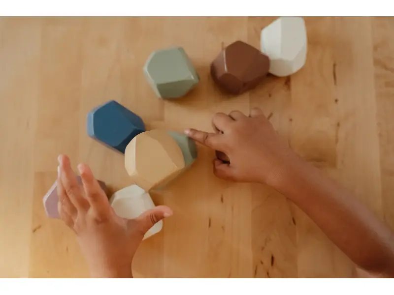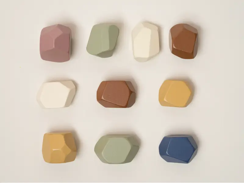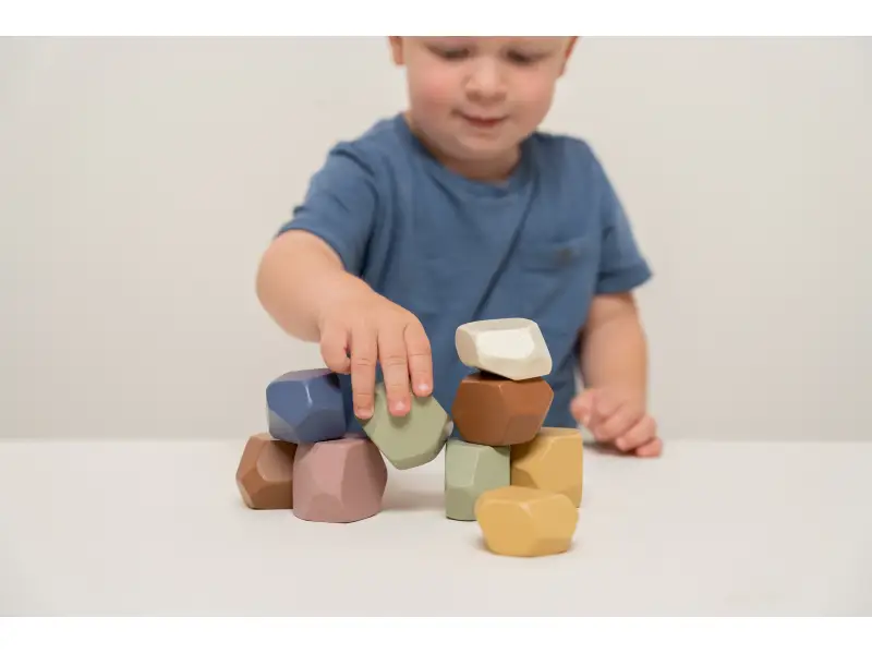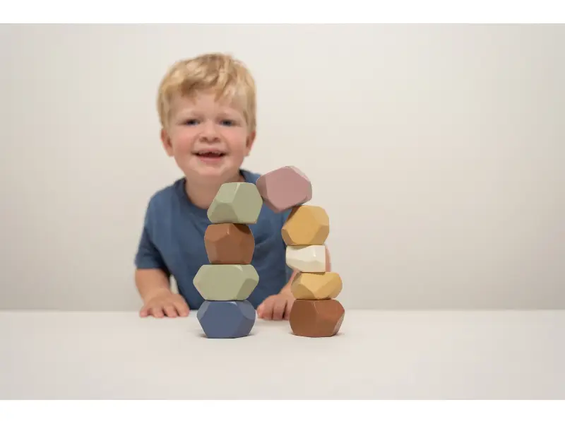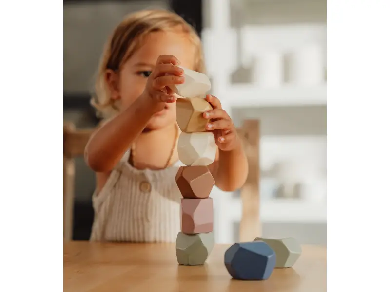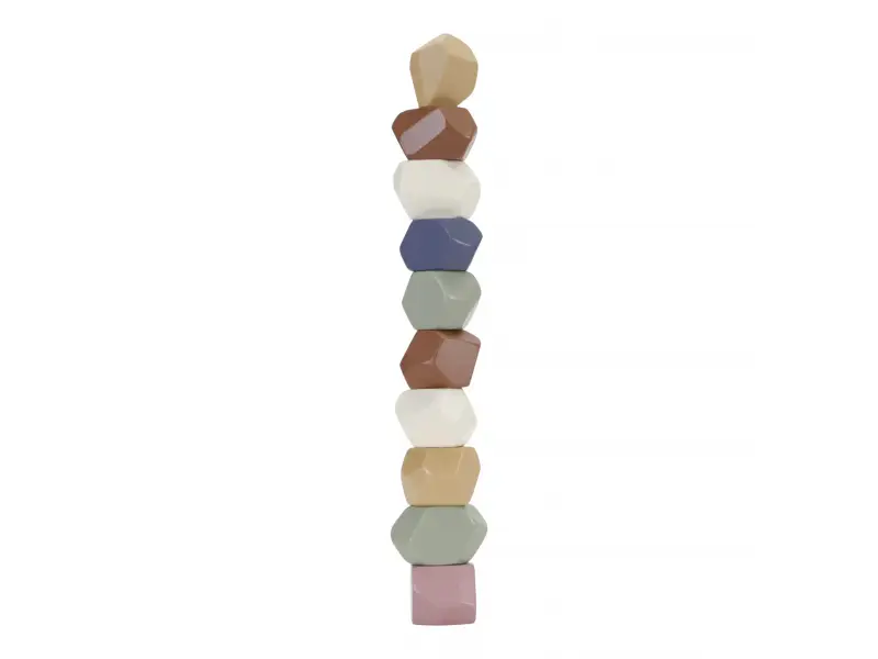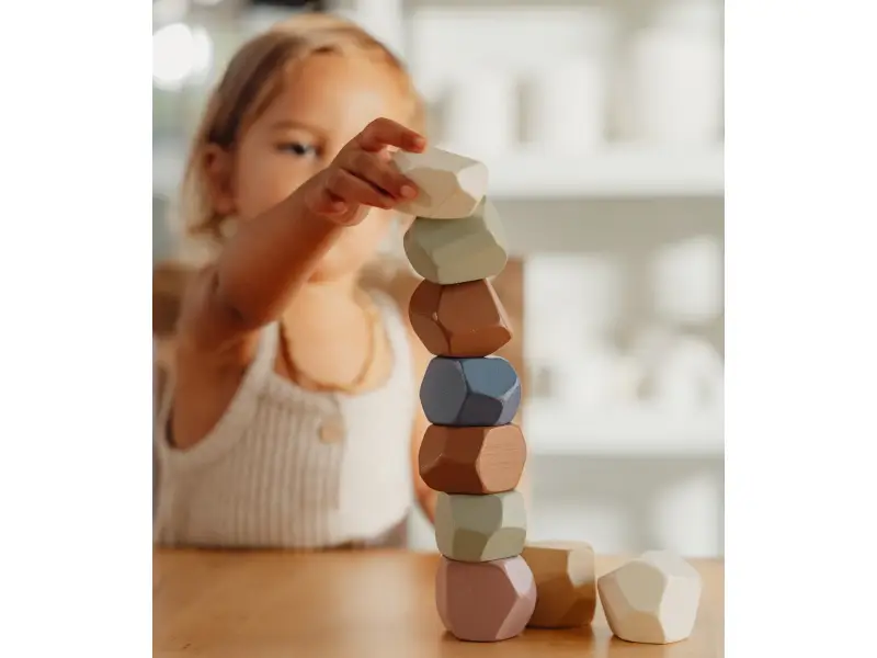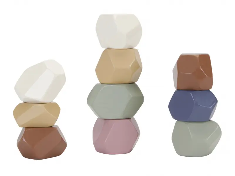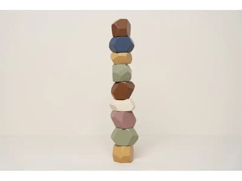 Balančné drevené kamene v krásnych pastelových farbách podporujú rozvoj jemnej motoriky a koncentrácie. Každý kameň má iný tvar a pri ich skladaní na seba sa dieťa učí trpezlivosti, sústredeniu a kreatívnemu mysleniu. Kamene je možné využiť aj na prvé počítanie a rozlišovanie farieb.