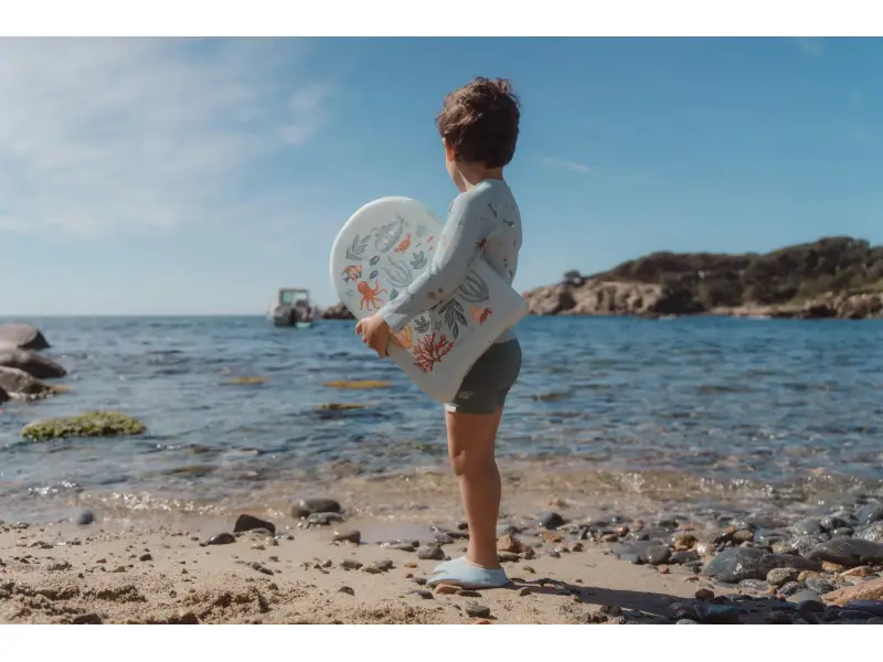 Topánky do vody z pružného materiálu s krásnou potlačou ochránia nožičky vášho dieťaťa pred horúcim plážovým pieskom aj pred pošmyknutím pri bazéne. Elastické prevedenie uľahčuje obúvanie aj vyzúvanie topánočiek.