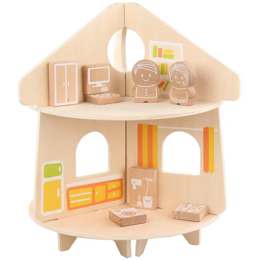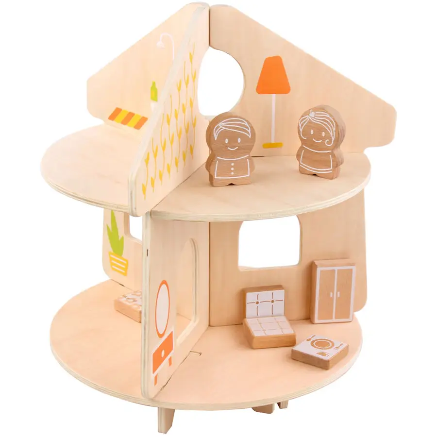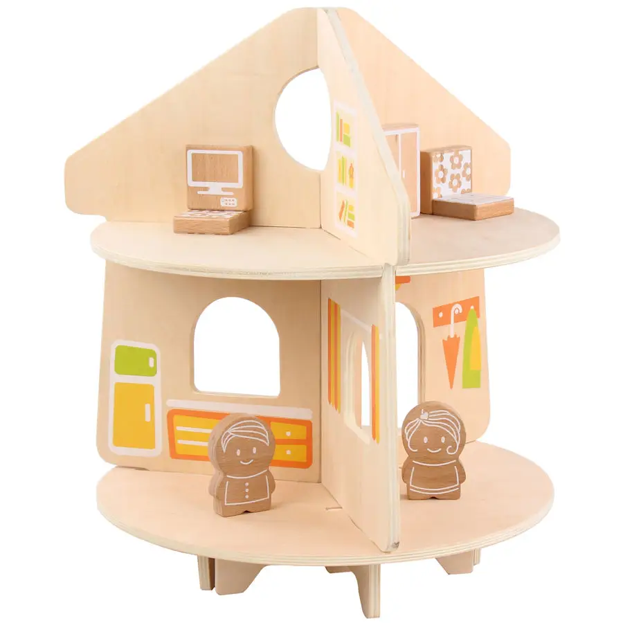 - Drevená hračkárska sada Round Doll House je variáciou klasickej detskej hračky.