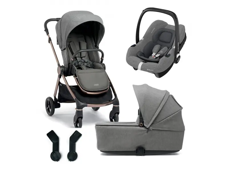 Výhodná sada obsahuje kočík Mamas & Papas Strada so športovým sedákom, vaničku Strada pre deti od narodenia, autosedačku Maxi-Cosi Cabriofix i-Size a adaptéry na pripevnenie autosedačky.
