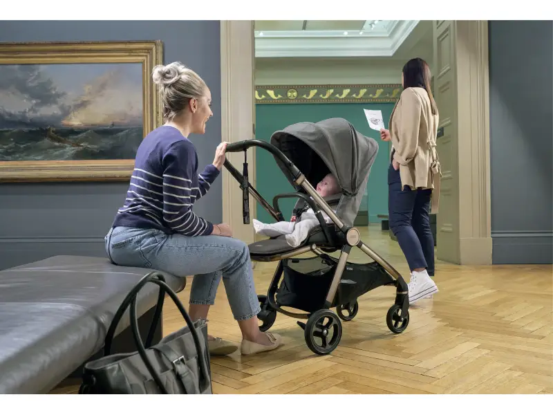 Vydajte sa na prechádzku mestom s novým kočíkom Mamas & Papas Strada. Kdekoľvek potrebujete, jednoducho ho jednou rukou zložíte a vo vzpriamenej polohe odložíte - či už doma, v kaviarni alebo na prevoz v aute.