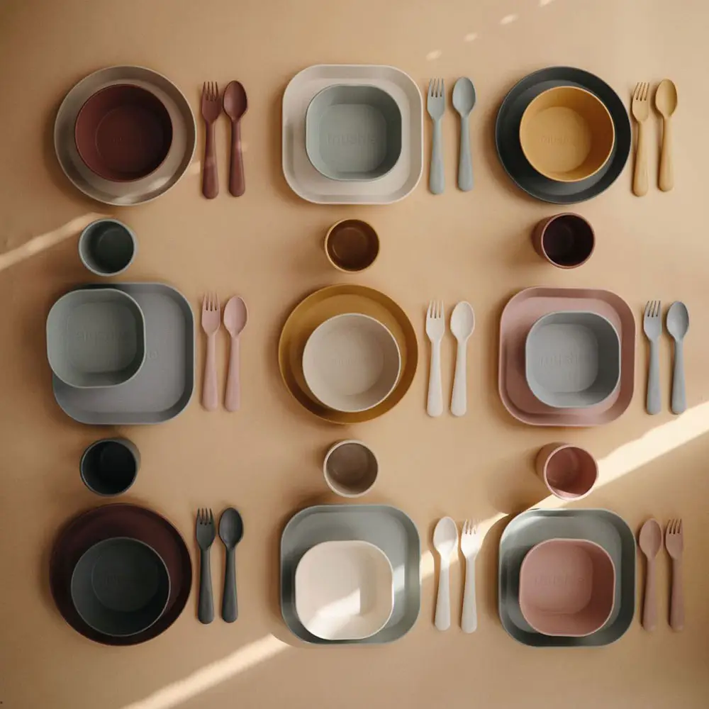 Mushie lyžička a vidlička - ľahučký príbor, ktorý do detskej ručičky padne tak akurát. Mushie príbor krásne dopĺňajú ďalšie farebne zladené Mushie sety detského riadu a doplnkov. Vaše stolovanie s deťmi bude jednoducho štýlové a originálne.