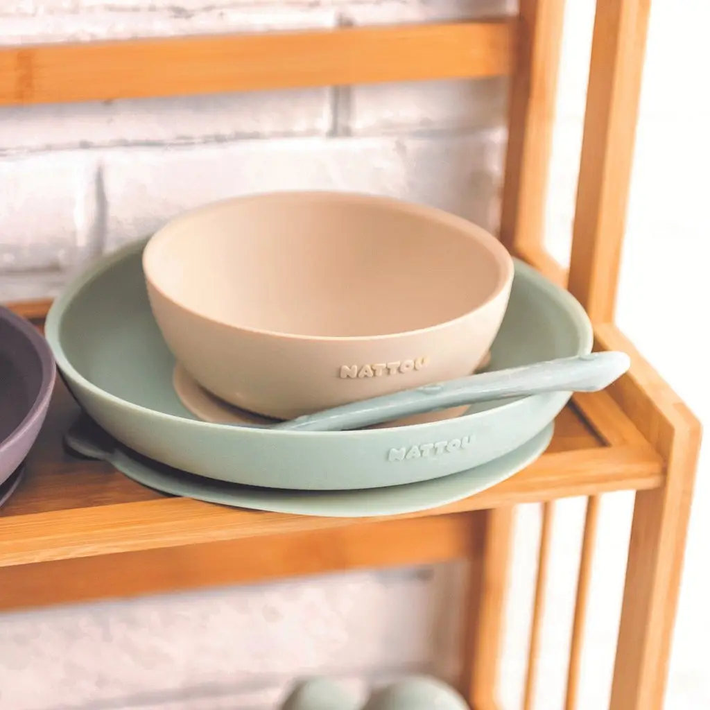Produkt NATTOU Set jedálenský silikónový 3 ks pieskovo-zelený bez BPA