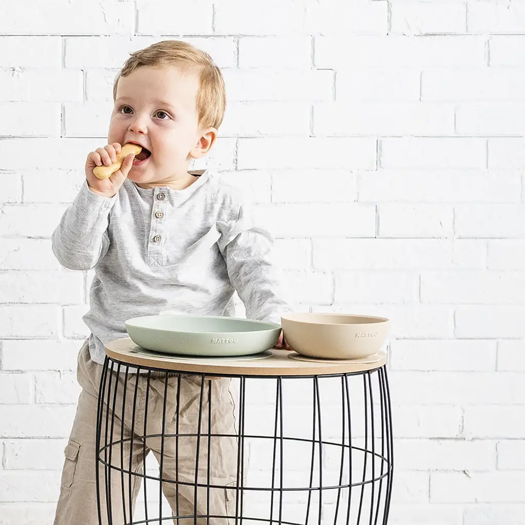 NATTOU Set jedálenský silikónový 3 ks pieskovo-zelený bez BPA