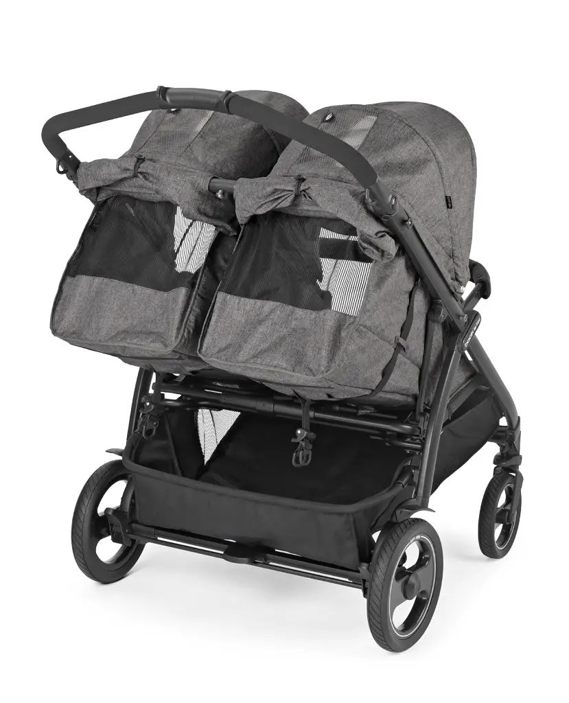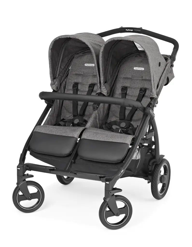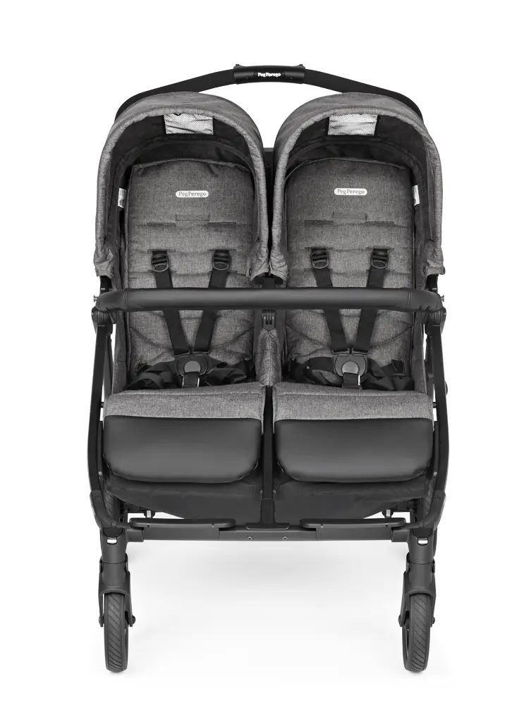 Dvojičkový kočík Book For Two talianskej výroby vyniká svojou výbavou a praktickými funkciami. Je navrhnutý tak, aby deťom poskytoval maximálne pohodlie a zároveň bol mimoriadne obratný na akomkoľvek povrchu. Je vhodný pre dvojčatá alebo súrodencov podobného veku od narodenia (0-36 mesiacov) a so šírkou len 74 cm umožňuje prejazd aj tými najužšími uličkami. Pre pohodlnú a jednoduchú manipuláciu možno rukoväť kočíka výškovo nastaviť podľa potreby rodiča a kočík možno zabrzdiť centrálnou brzdou. Odpružené kolesá Soft Ride s dezénom a 12 guličkovými ložiskami umožňujú dokonalú manévrovateľnosť len jednou rukou. Športové sedadlá majú nezávisle nastaviteľné opierky chrbta a nôh, striešky s ochranným faktorom UPF 50+ a otváraciu prednú rukoväť z ECO kože. Pod kočíkom sa nachádza priestranný nákupný košík a celý kočík sa dá zložiť do kompaktných rozmerov jednou rukou, pričom kočík po zložení samostatne stojí.