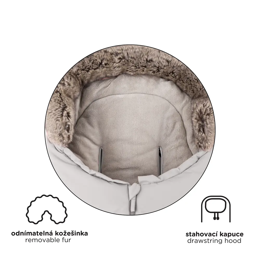 PETITE&MARS Set zimný fusak Arctic 4v1 + rukavice na kočík Furry Pastel Peach