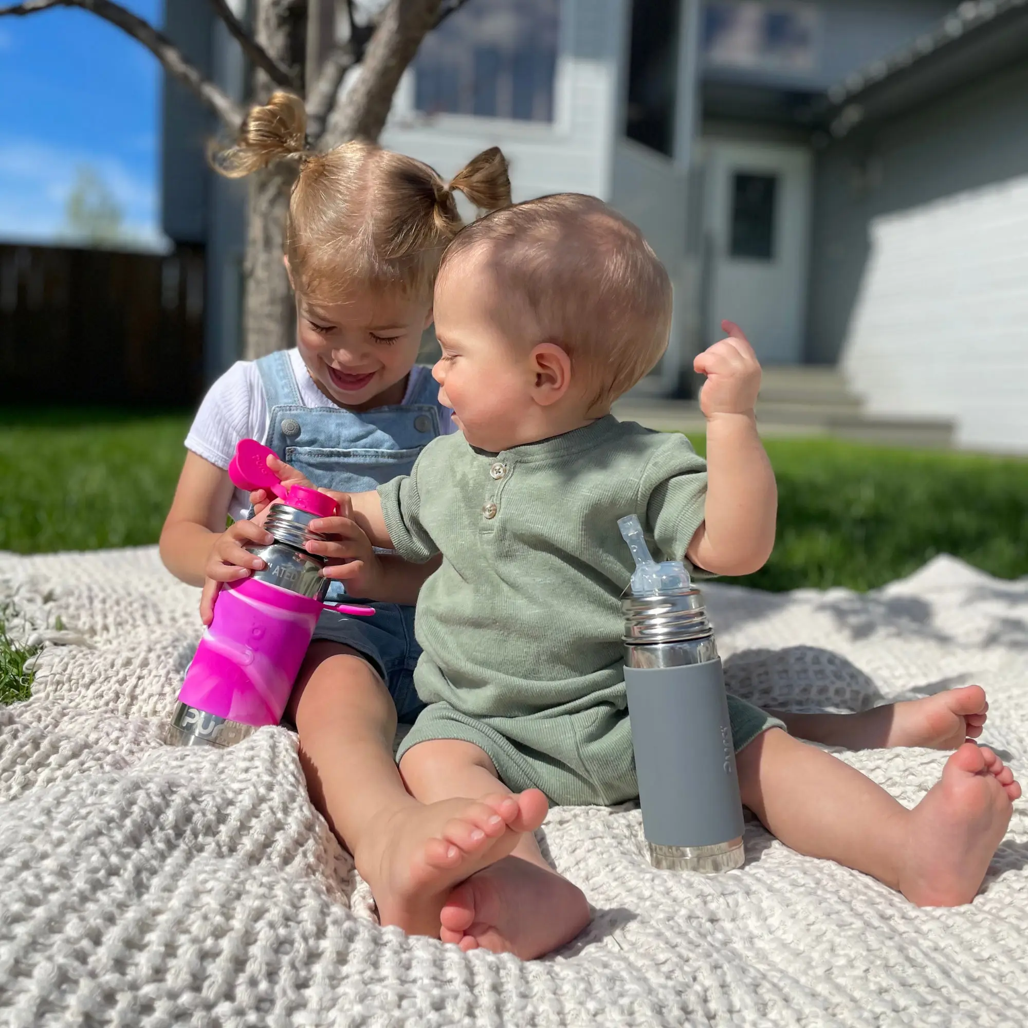 Jednoducho tak zmeníte športovú fľašu na fľašu s náustkom, slamkou, alebo s použitím tesniaceho disku na nádobu na drobné pokrmy. Jednu fľašu tak môžete používať roky a zároveň šetríte peniaze aj životné prostredie. Fľaša a objímka sú vyrobené z prvotriednej potravinárskej nerezovej ocele triedy 304 (18/8) a ostatné časti zo silikónu najvyššej medicínskej kvality. Bez BPA, PVC, ftalátov a bez akýchkoľvek iných nebezpečných látok a toxínov, testované podľa smerníc EÚ. Pura Big Mouth športový uzáver je vyrobený zo 100% silikónu medicínskej kvality. Malý otvor na pitie eliminuje rozliatia a ventil zároveň zabezpečuje plynulý tok tekutín.