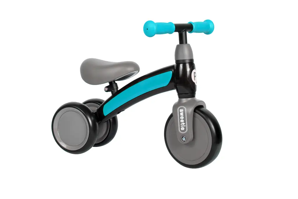 Je vybavený zadnými zdvojenými kolesami - celkovo 3, ktoré zaisťujú výnimočnú stabilitu, pneumatiky z peny EVA sú tiché a umožňujú používať vozidlo v interiéri aj exteriéri. Nastaviteľné riadidlá a sedlo umožňujú prispôsobiť vozidlo výške dieťaťa. Prúdnicový tvar znižuje odpor vzduchu, čo sa premieta do vyššej rýchlosti jazdy. Podľa fyzikálnych princípov platí, že čím rýchlejšie sa vozidlo/bicykel pohybuje, tým ľahšie je udržať vzpriamenú polohu. Mäkké a tvarované sedlo a protišmykové rukoväte poskytujú komfort a pohodlie. Oceľová konštrukcia rámu a systému riadidiel - umožňuje používanie bicykla deťmi do 20 kg. Rám bicykla Sweetie je obalený pevnou vločkovou korbou najvyššej kvality, ktorá mu tiež dodáva originálny dizajn.