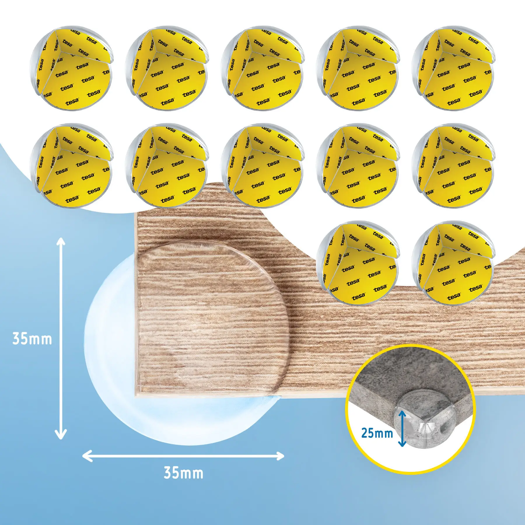 Obojstranná silná lepiaca páska, ktorá je súčasťou balenia, zaistí nielen jednoduchú montáž bez použitia ďalších nástrojov, ale aj správne upevnenie, aby ochrana po prvom kontakte nespadla. Oválny tvar ochráni hranu stola, takže rodič môže pokojne sledovať, ako sa deti okolo hrajú.