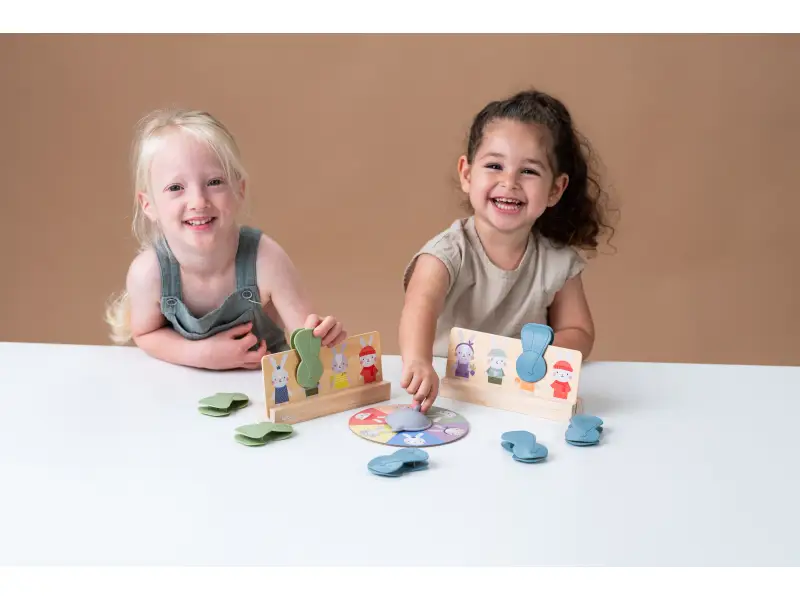 Cieľom hry je ako prvý umiestniť všetkých štyroch zajacov na drevenú hraciu plochu. Zajačiky sa umiestňujú podľa obrázka, na ktorom sa po roztočení zastaví šípka. Hra pomáha batoľatám rozvíjať sociálnu zručnosť "striedanie", jemnú motoriku, rozpoznávanie farieb a počítanie.