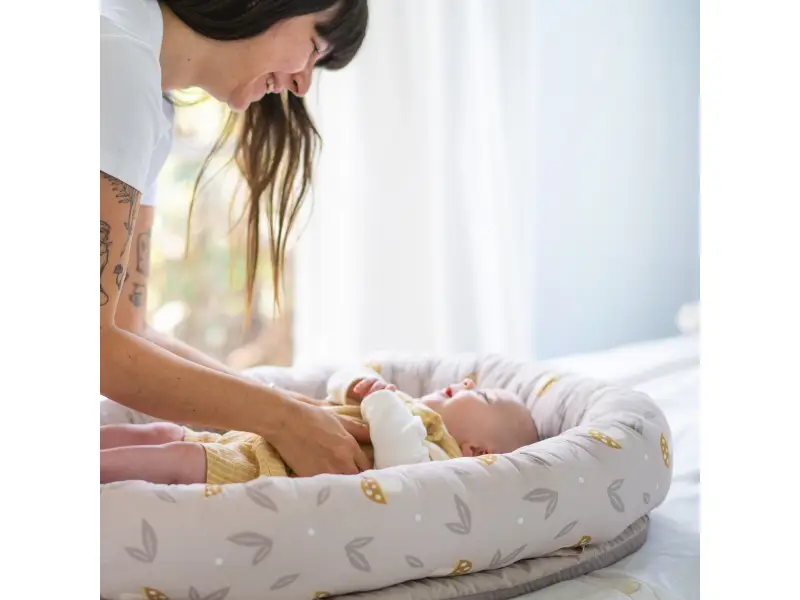 Hnízdo pro miminko Taf Toys je praktický doplněk, který roste spolu s dítětem. V prvních týdnech slouží jako měkké, bezpečně obepínající hnízdo, ve kterém se novorozenec lépe zklidní a odpočívá. Od třech měsíců věku dítěte lze hnízdo rozložit a využít jako pohodlný prostor pro hraní. Součástí odnímatelné hrazdy je plyšový medvídek se světýlky a 22 minutami uklidňujících melodií, které pomáhají miminko zabavit i uklidnit. Hudební medvidek je použitelný i samostatně.