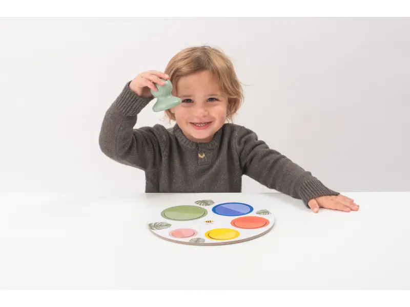 Hra rozvíja jemnú motoriku dieťaťa, kognitívne zručnosti aj koordináciu ruka - oko. Oddelenie kartičky od chytača učí dieťa koordináciu používania oboch rúk.